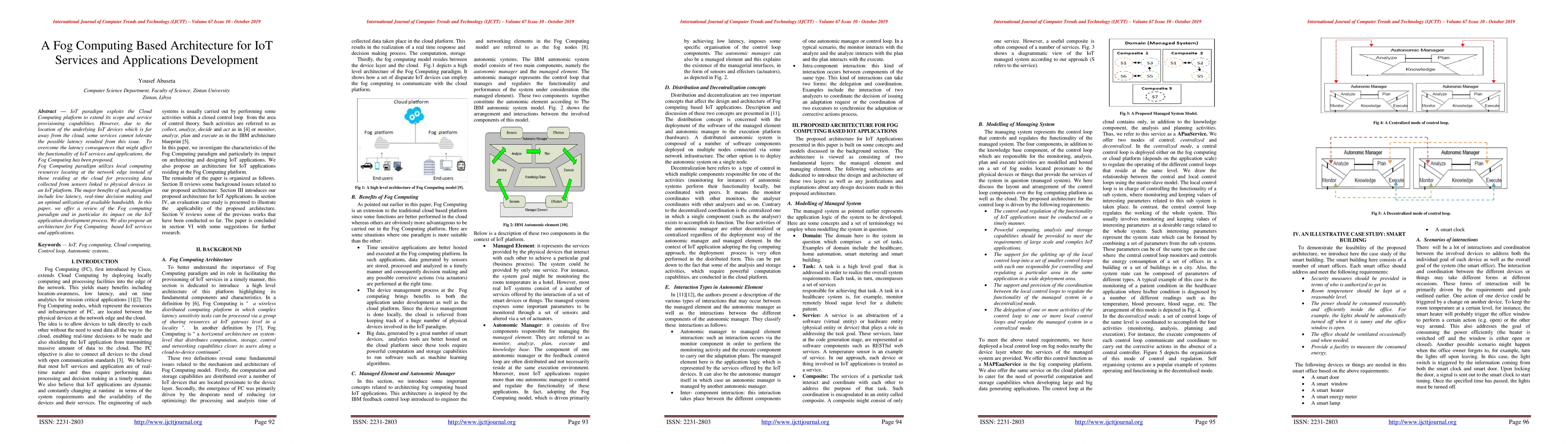 This paper reviews the Fog Computing paradigm and its benefits for reducing latency in IoT applications, proposing an architecture that leverages local edge computing resources to enhance real-time decision-making and bandwidth efficiency. The study aims to improve IoT service delivery by minimizing the reliance on distant cloud resources.