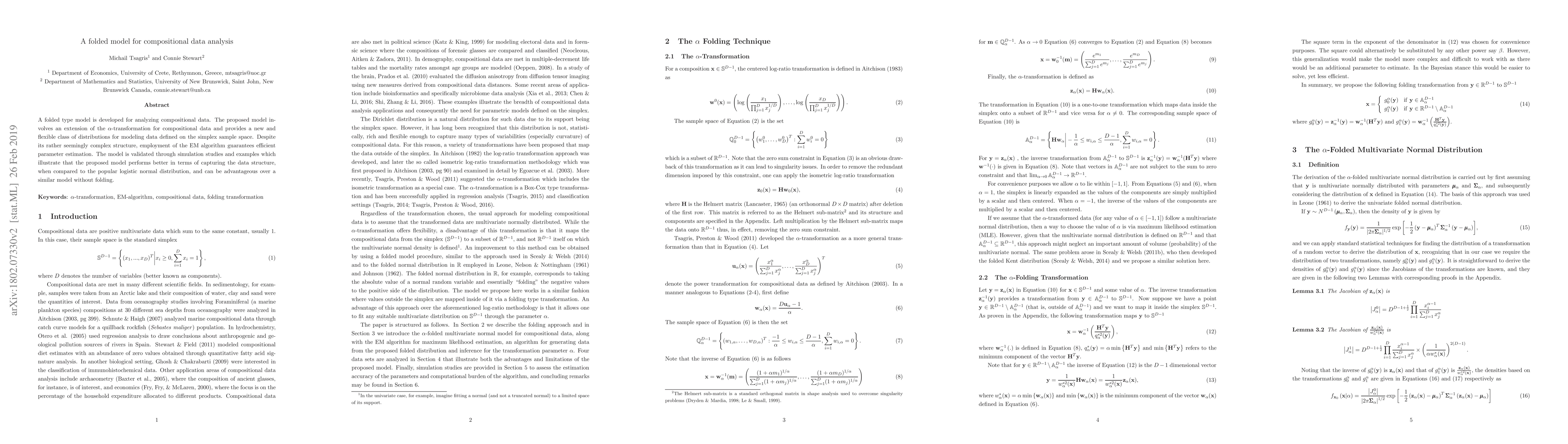 A folded type model is developed for analyzing compositional data. The proposed model involves an extension of the $\alpha$-transformation for compositional data and provides a new and flexible class of distributions for modeling data defined on the simplex sample space. Despite its rather seemingly complex structure, employment of the EM algorithm guarantees efficient parameter estimation. The model is validated through simulation studies and examples which illustrate that the proposed model performs better in terms of capturing the data structure, when compared to the popular logistic normal distribution, and can be advantageous over a similar model without folding.
