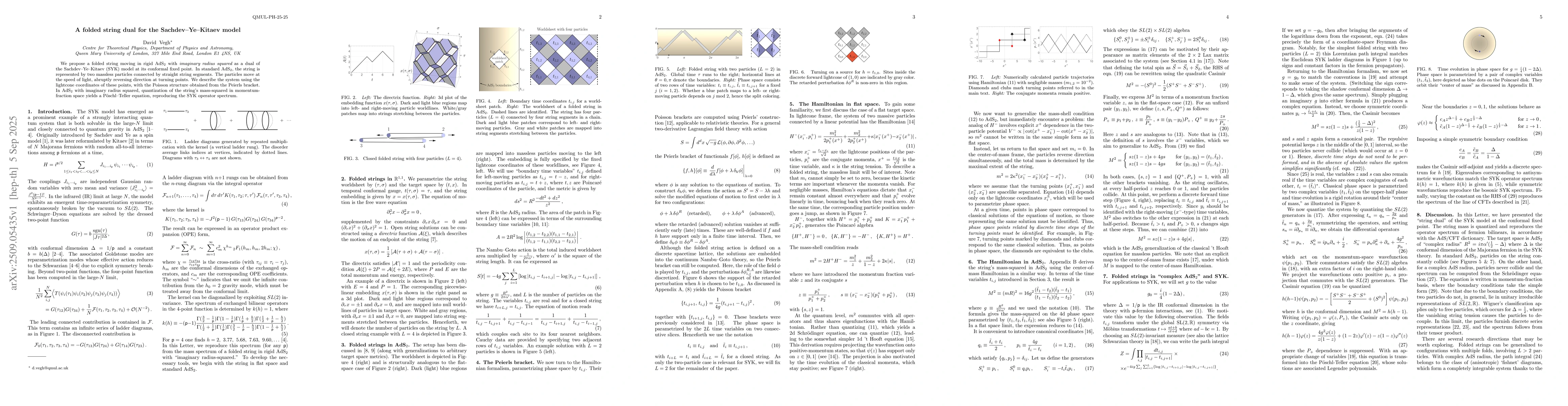 We propose a folded string moving in rigid AdS$_2$ with imaginary radius squared as a dual of the Sachdev-Ye-Kitaev (SYK) model at its conformal fixed point. In standard AdS$_2$, the string is represented by two massless particles connected by straight string segments. The particles move at the speed of light, abruptly reversing direction at turning points. We describe the system using the lightcone coordinates of these points, with the Poisson structure obtained from the Peierls bracket. In AdS$_2$ with imaginary radius squared, quantization of the string's mass-squared in momentum-fraction space yields a P\"oschl-Teller equation, reproducing the SYK operator spectrum.