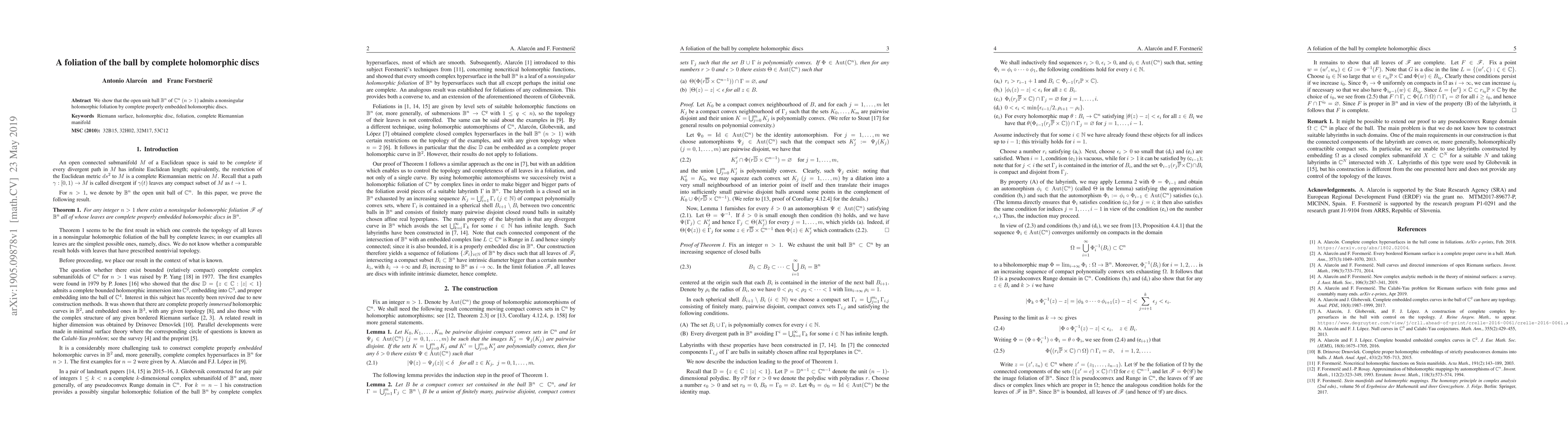 Summary: The paper demonstrates that the open unit ball in complex space $\mathbb{C}^n$ ($n>1$) can be smoothly foliated by complete, properly embedded holomorphic discs, providing a novel structure within complex analysis.