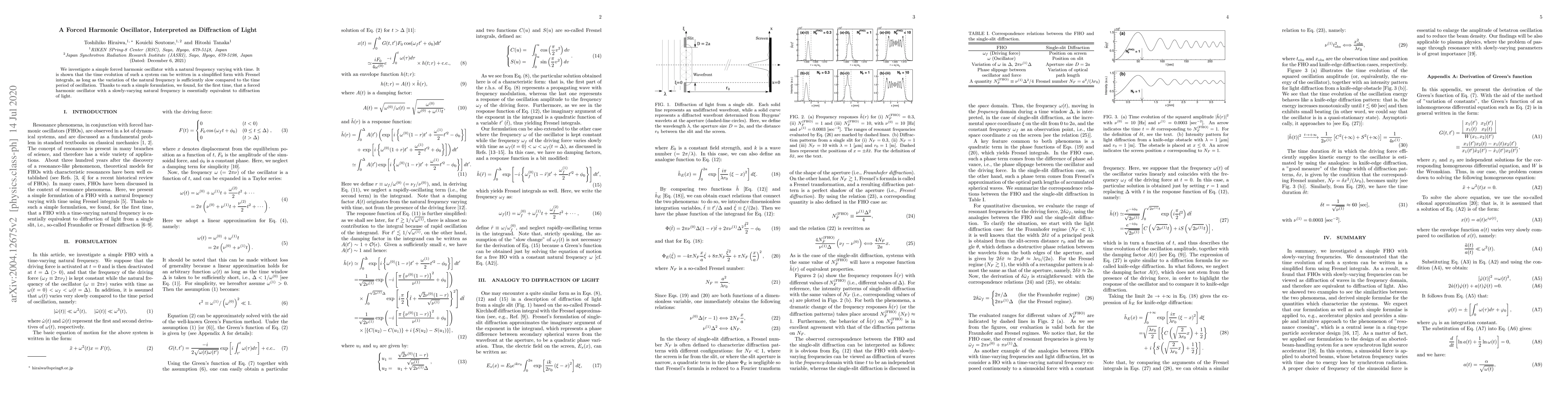 A forced harmonic oscillator with a slowly-varying natural frequency is equivalent to diffraction of light, as shown through the use of Fresnel integrals. This finding simplifies the time evolution of such systems.