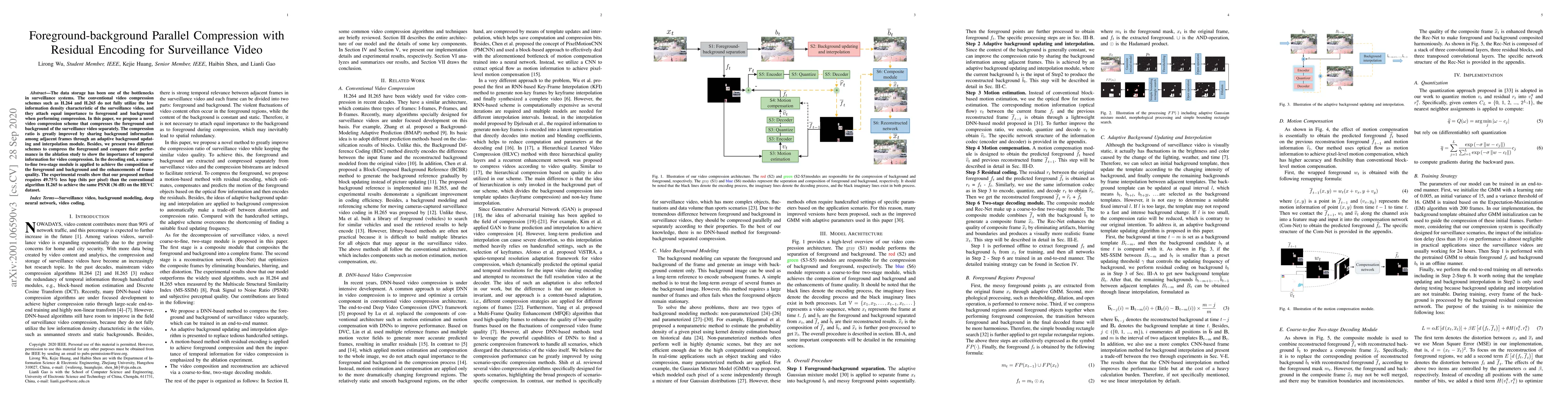This paper proposes a novel video compression method for surveillance videos that separates foreground and background compression, significantly improving storage efficiency. The method achieves a 69.5% reduction in bits per pixel compared to H.265 while maintaining similar PSNR, demonstrating enhanced compression efficiency and quality.