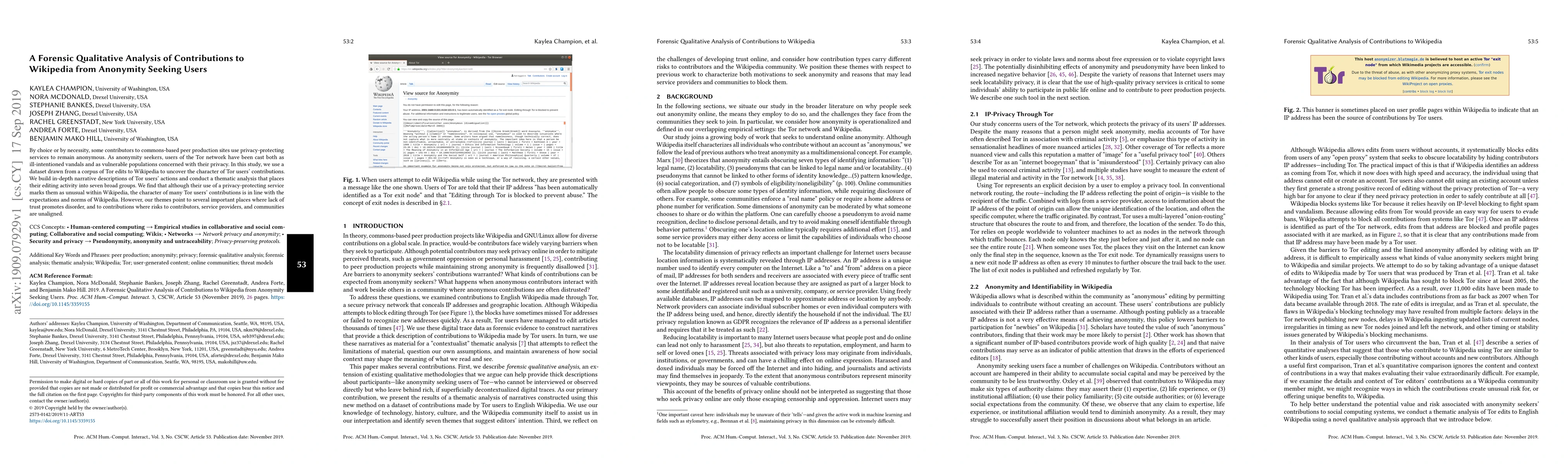 This study analyzes Tor network users' contributions to Wikipedia, revealing that while many edits align with Wikipedia norms, themes of trust issues and misalignment of risks emerge, highlighting areas where anonymity can lead to disorder.