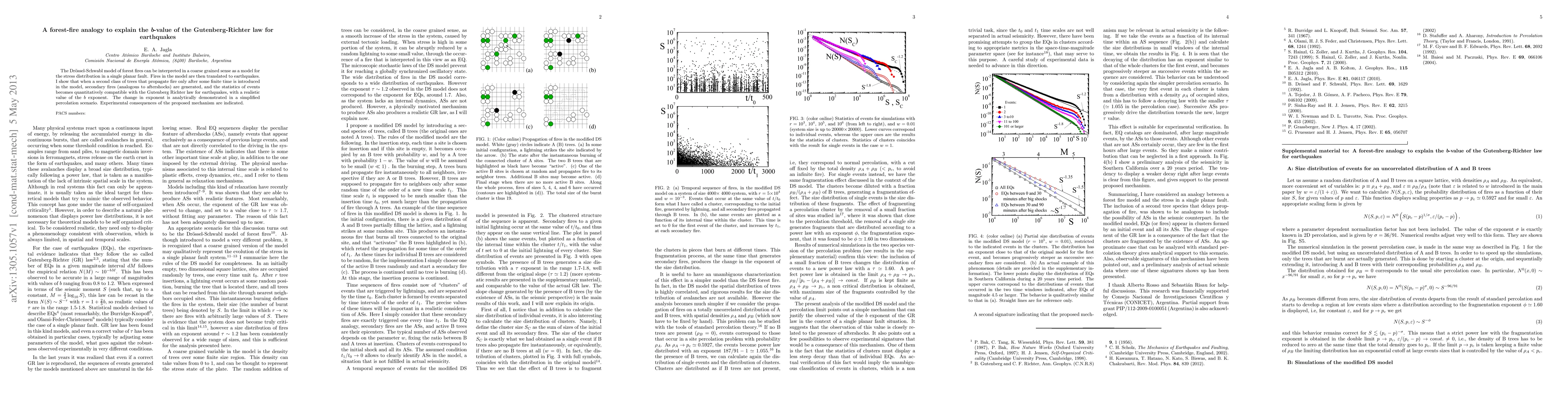 The Drossel-Schwabl forest fire model is adapted to simulate earthquake stress distribution, showing that introducing a second class of trees leads to aftershocks and a realistic $b$ exponent in the Gutenberg-Richter law. Analytical demonstration in a simplified percolation scenario supports the model's compatibility with earthquake statistics.