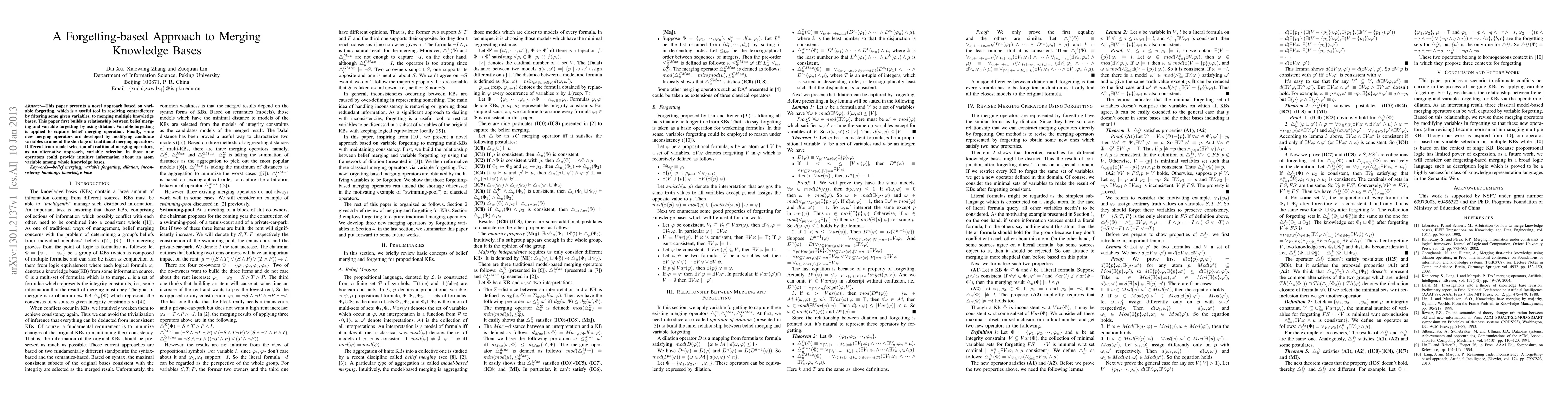 The paper proposes a forgetting-based approach to merging knowledge bases using variable forgetting, which is linked to belief merging via dilation. It reformulates traditional merging operators and develops new forgetting-based merging operators.