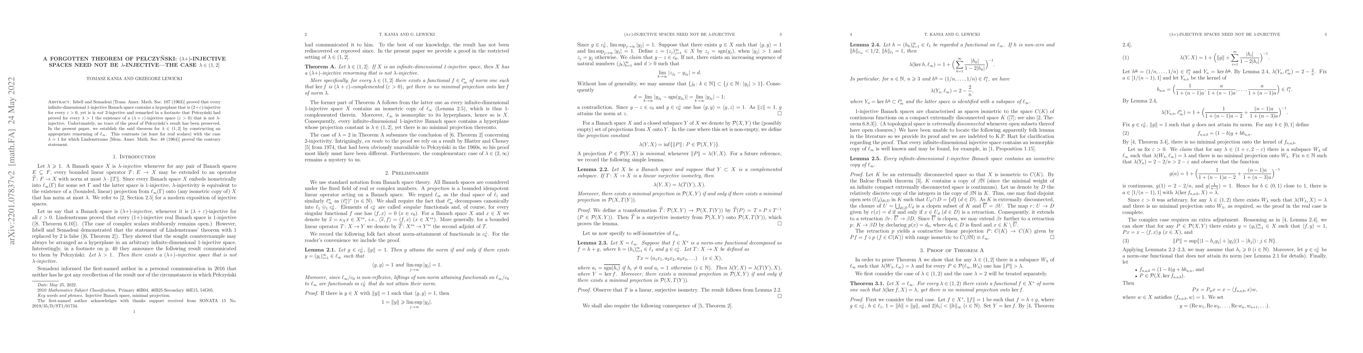 The research rediscovers and proves a forgotten theorem of Pełczyński, providing new insights into the behavior of (λ+)-injective spaces that are not λ-injective for λ∈(1,2], contrasting with known results for λ = 1.