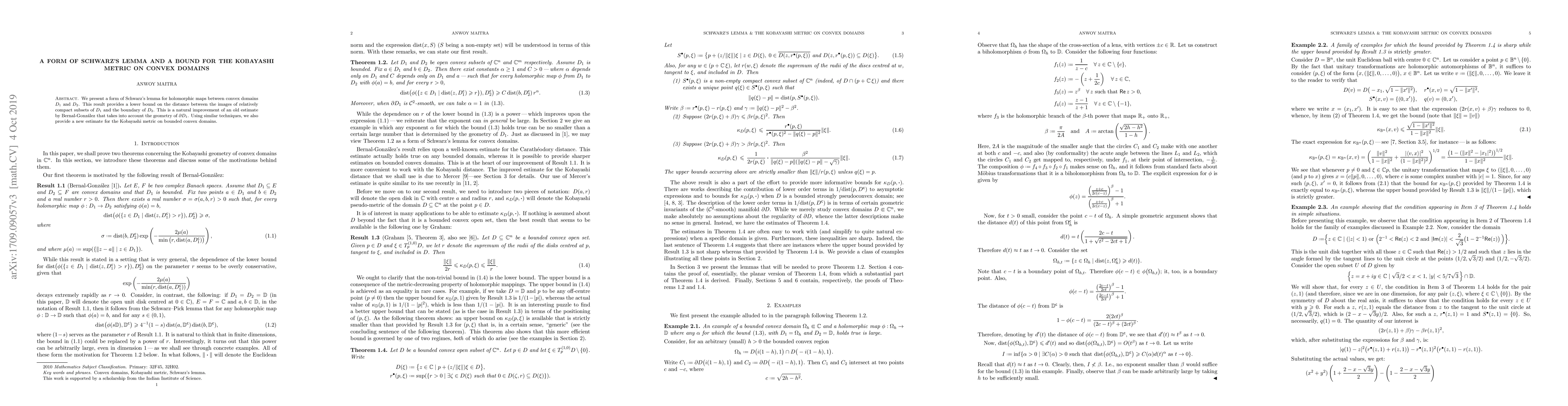 We present a form of Schwarz's lemma for holomorphic maps between convex domains $D_1$ and $D_2$. This result provides a lower bound on the distance between the images of relatively compact subsets of $D_1$ and the boundary of $D_2$. This is a natural improvement of an old estimate by Bernal-Gonz\'alez that takes into account the geometry of $\partial{D_1}$. Using similar techniques, we also provide a new estimate for the Kobayashi metric on bounded convex domains.