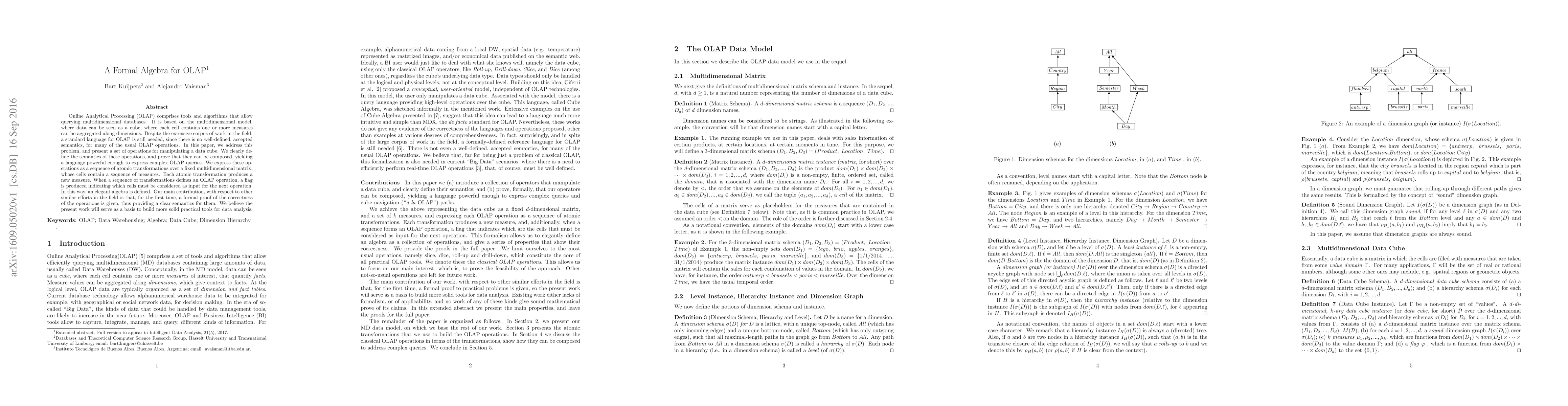 This paper introduces a formal algebra for OLAP, defining a set of operations for manipulating data cubes with clear semantics, and proving their correctness. The proposed algebra provides a robust foundation for expressing complex OLAP queries and serves as a basis for developing practical data analysis tools.