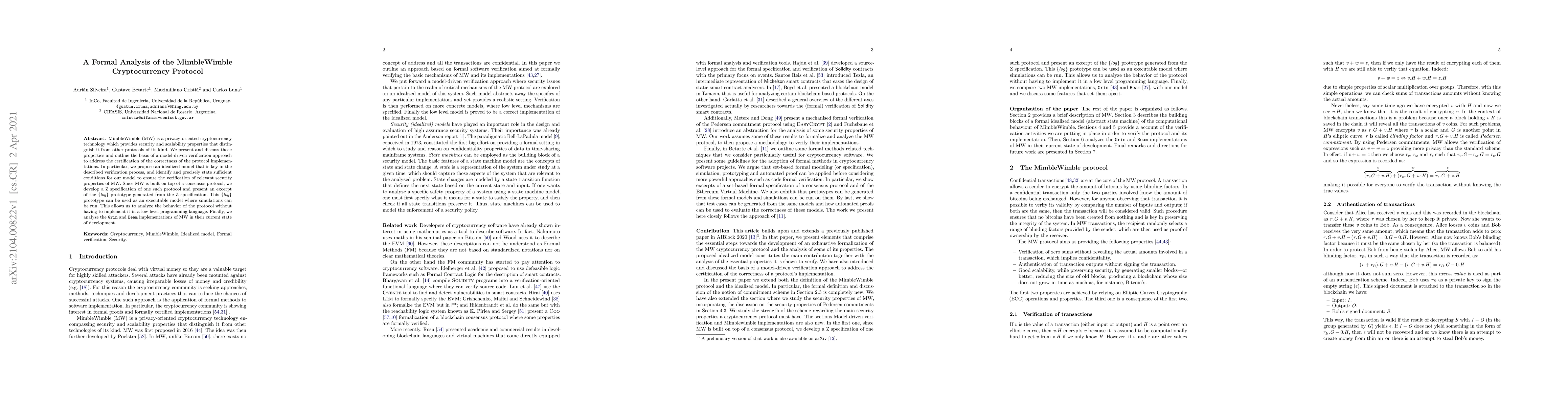 MimbleWimble (MW) is a privacy-oriented cryptocurrency technology which provides security and scalability properties that distinguish it from other protocols of its kind. We present and discuss those properties and outline the basis of a model-driven verification approach to address the certification of the correctness of the protocol implementations. In particular, we propose an idealized model that is key in the described verification process, and identify and precisely state sufficient conditions for our model to ensure the verification of relevant security properties of MW. Since MW is built on top of a consensus protocol, we develop a Z specification of one such protocol and present an excerpt of the $\{log\}$ prototype generated from the Z specification. This $\{log\}$ prototype can be used as an executable model where simulations can be run. This allows us to analyze the behavior of the protocol without having to implement it in a low level programming language. Finally, we analyze the Grin and Beam implementations of MW in their current state of development.