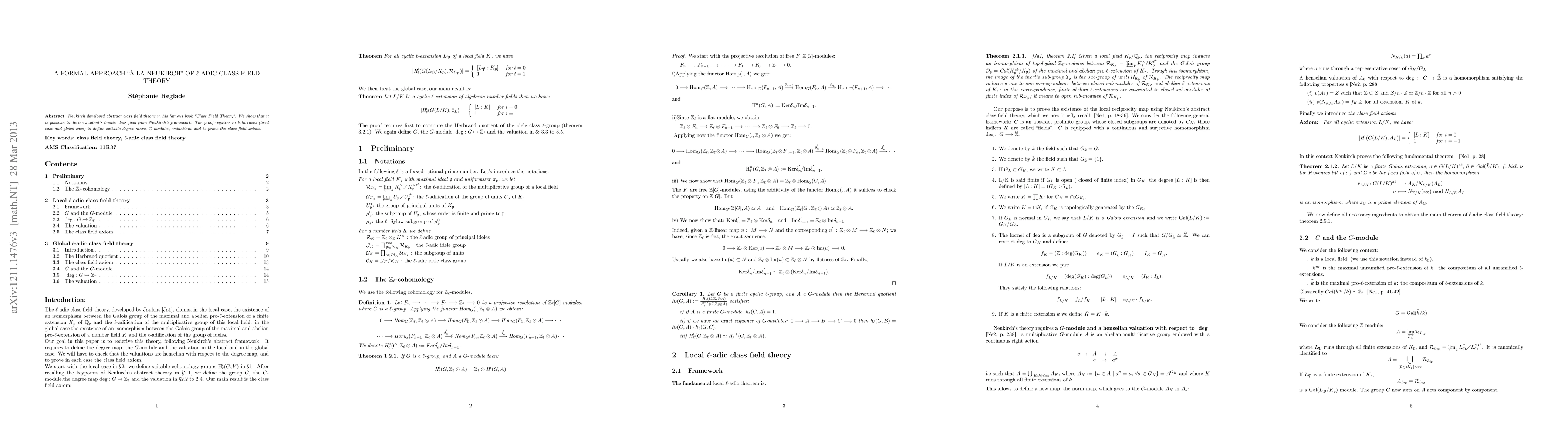 Summary: This paper demonstrates how Jaulent's $\ell$-adic class field theory can be derived using Neukirch's abstract class field theory framework, requiring the definition of appropriate degree maps, G-modules, valuations, and proving the class field axiom in both local and global contexts.