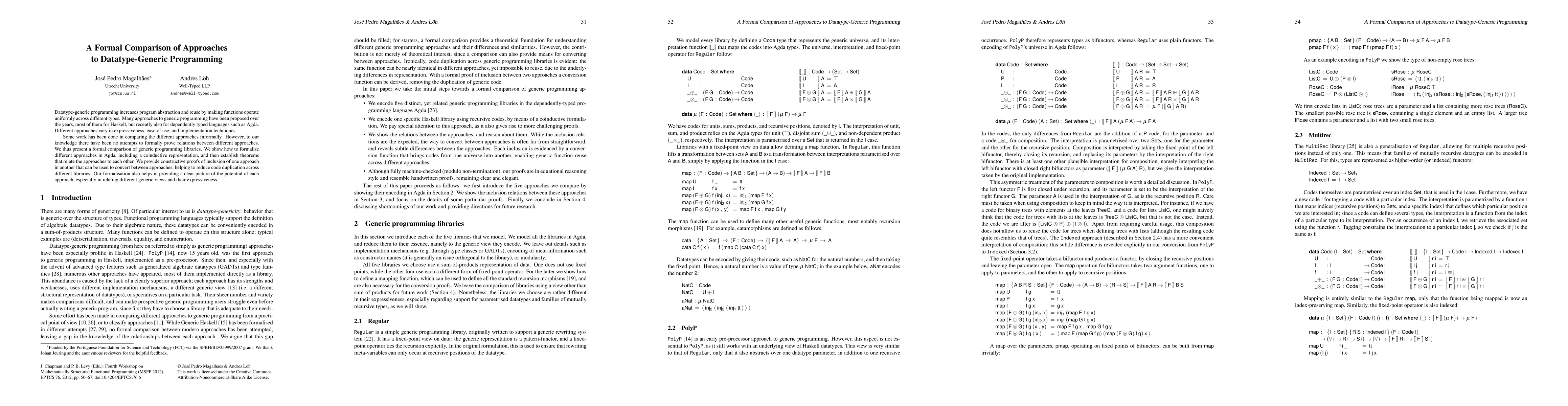 This paper formally compares various approaches to datatype-generic programming, focusing on their implementation in Agda. It establishes theorems to prove relationships between these approaches, facilitating conversions and reducing code duplication.