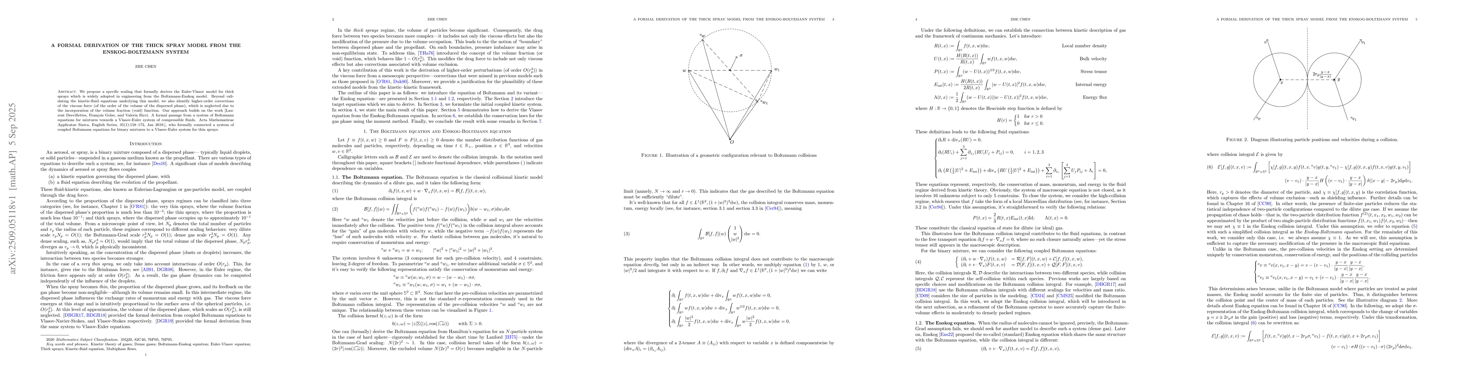We propose a specific scaling that formally derives the Euler-Vlasov model for thick sprays which is widely adopted in engineering from the Boltzmann-Enskog model. Beyond validating the kinetic-fluid equations underlying this model, we also identify higher-order corrections of the viscous force (of the order of the volume of the dispersed phase), which is neglected due to the incorporation of the volume fraction (void) function. Our approach builds on the work [Laurent Desvillettes, Fran\c{c}ois Golse, and Valeria Ricci. A formal passage from a system of Boltzmann equations for mixtures towards a Vlasov-Euler system of compressible fluids. Acta Mathematicae Applicatae Sinica, English Series, 35(1):158-173, Jan 2019.], who formally connected a system of coupled Boltzmann equations for binary mixtures to a Vlasov-Euler system for thin sprays.