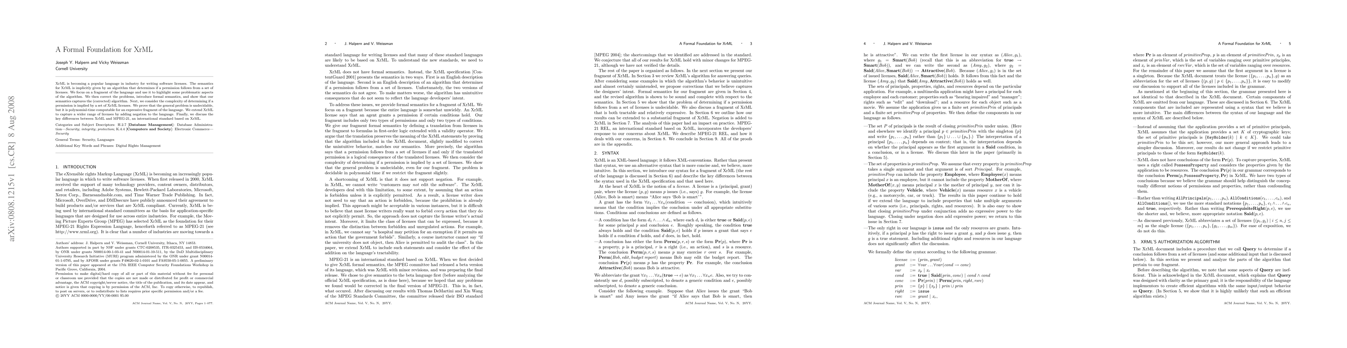 XrML is becoming a popular language in industry for writing software licenses. The semantics for XrML is implicitly given by an algorithm that determines if a permission follows from a set of licenses. We focus on a fragment of the language and use it to highlight some problematic aspects of the algorithm. We then correct the problems, introduce formal semantics, and show that our semantics captures the (corrected) algorithm. Next, we consider the complexity of determining if a permission is implied by a set of XrML licenses. We prove that the general problem is undecidable, but it is polynomial-time computable for an expressive fragment of the language. We extend XrML to capture a wider range of licenses by adding negation to the language. Finally, we discuss the key differences between XrML and MPEG-21, an international standard based on XrML.