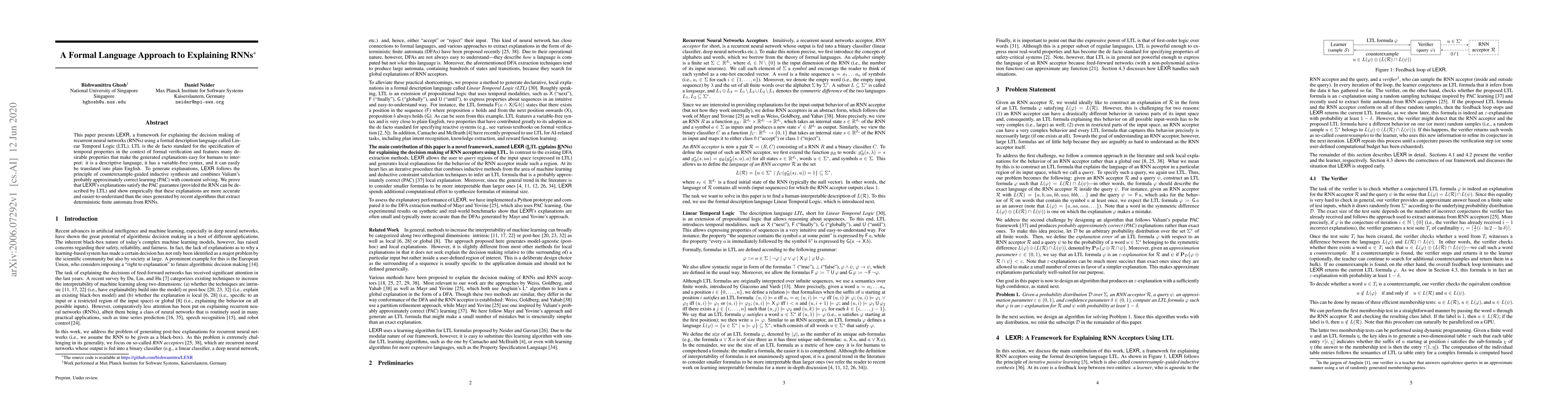 This paper introduces LEXR, a framework that uses Linear Temporal Logic to explain RNNs, providing more accurate and understandable explanations than existing methods.