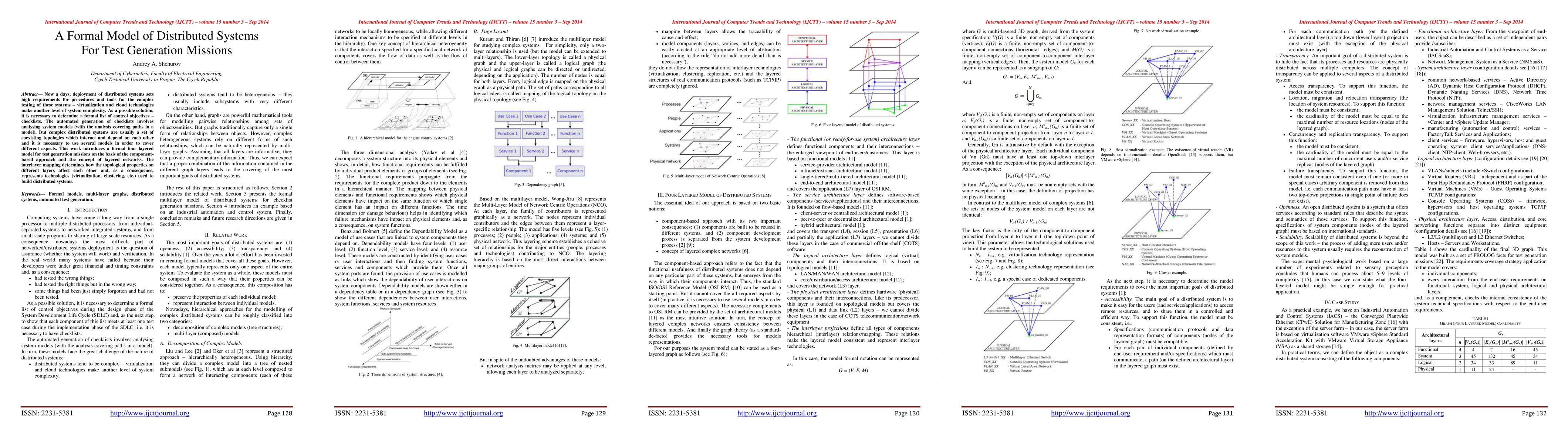 Nowadays, deployment of distributed systems sets high requirements for procedures and tools for the complex testing of these systems - virtualization and cloud technologies make another level of system complexity. As a possible solution, it is necessary to determine a formal list of control objectives - checklists. The automated generation of checklists involves analyzing system models (with the analysis covering paths in a model). But complex distributed systems are usually a set of coexisting topologies which interact and depend on each other and it is necessary to use several models in order to cover different aspects. This work introduces a formal four layered model for test generation missions on the basis of the component-based approach and the concept of layered networks. The interlayer mapping determines how the topological properties on different layers affect each other and, as a consequence, represents technologies (virtualization, clustering, etc.) used to build distributed systems