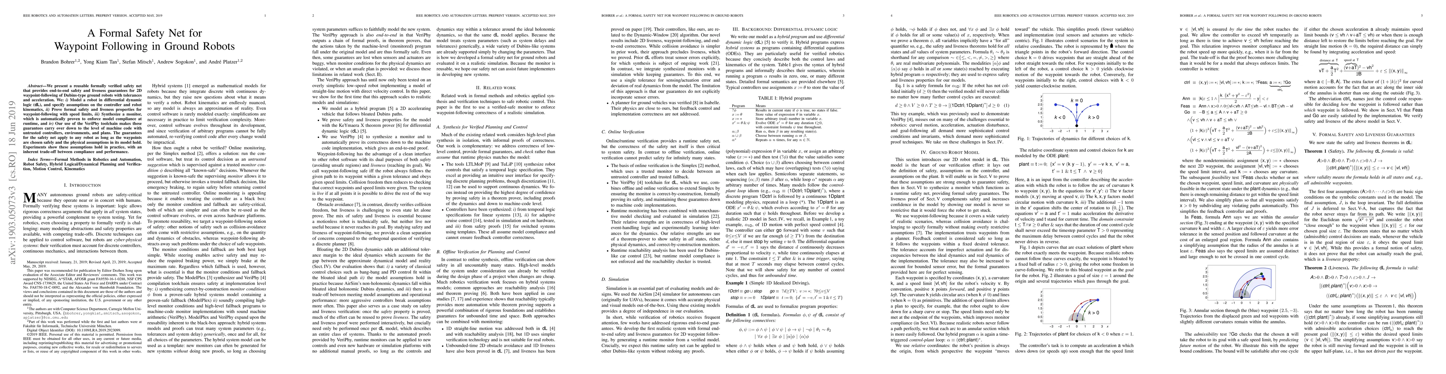 Researchers developed a formal safety net for ground robots to ensure safe waypoint following with guaranteed end-to-end safety and liveness properties, applicable to any robot with safely chosen waypoints and adhering physical assumptions.