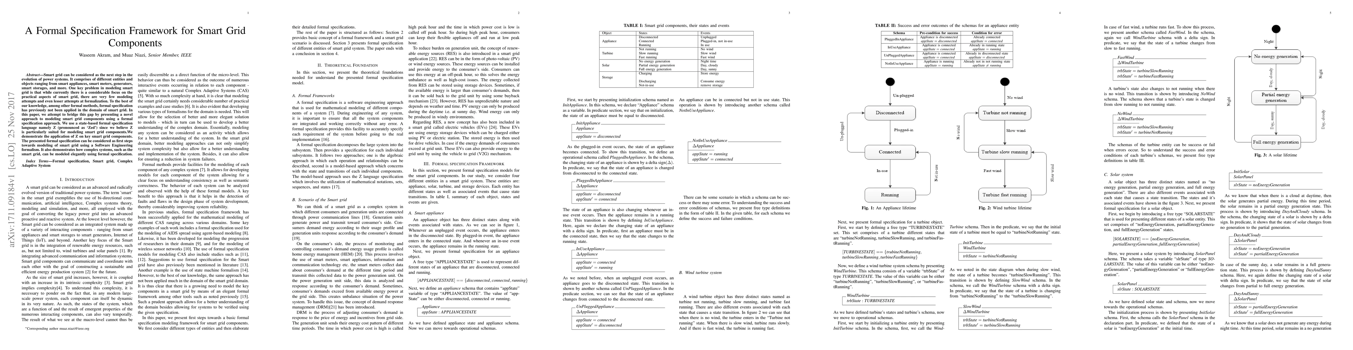 This paper introduces a novel approach to formally model smart grid components using the state-based formal specification language Z, aiming to bridge the gap between practical smart grid implementations and formal modeling. The authors demonstrate the application of Z on key smart grid components, showcasing its potential to elegantly model complex systems like the smart grid.