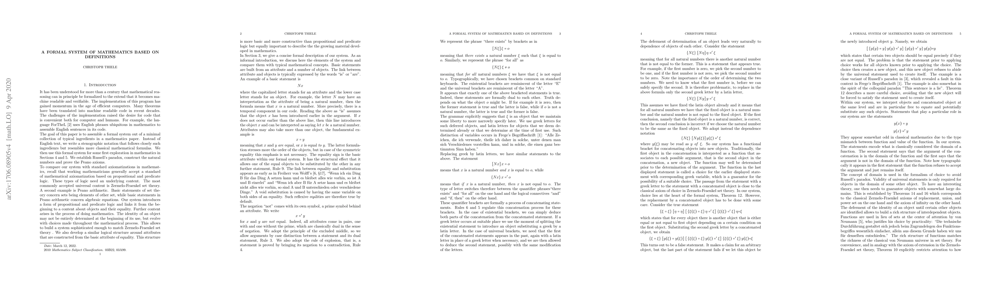 Summary: This paper introduces a formal mathematical system based on definitions, utilizing it to rigorously construct the natural numbers. The focus is on the foundational aspects of mathematics through precise, definition-driven constructions.