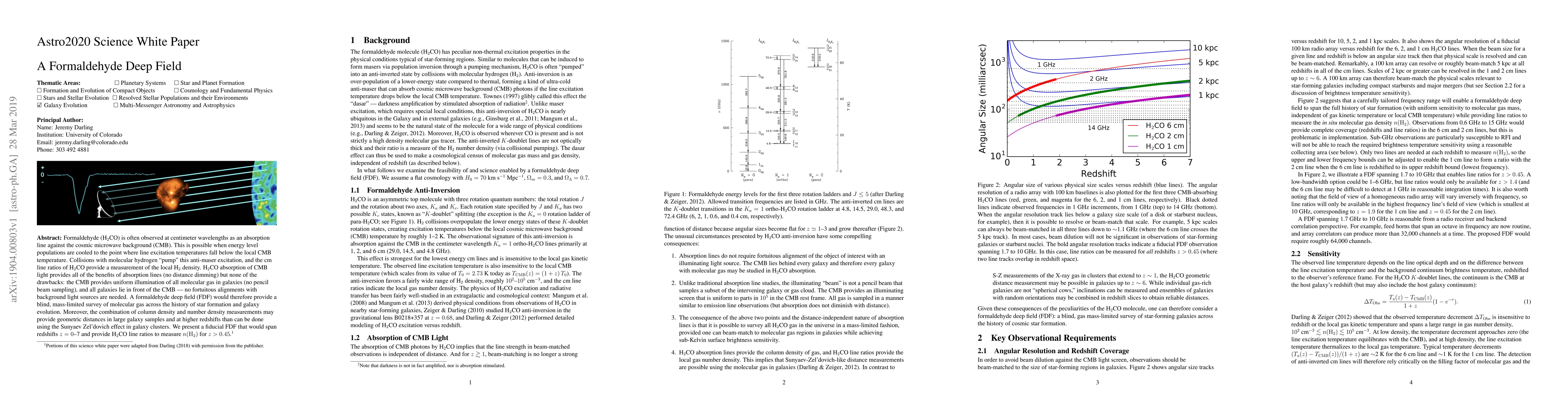 Formaldehyde (H2CO) is often observed at centimeter wavelengths as an absorption line against the cosmic microwave background (CMB). This is possible when energy level populations are cooled to the point where line excitation temperatures fall below the local CMB temperature. Collisions with molecular hydrogen "pump" this anti-maser excitation, and the cm line ratios of H2CO provide a measurement of the local H2 density. H2CO absorption of CMB light provides all of the benefits of absorption lines (no distance dimming) but none of the drawbacks: the CMB provides uniform illumination of all molecular gas in galaxies (no pencil beam sampling), and all galaxies lie in front of the CMB - no fortuitous alignments with background light sources are needed. A formaldehyde deep field (FDF) would therefore provide a blind, mass-limited survey of molecular gas across the history of star formation and galaxy evolution. Moreover, the combination of column density and number density measurements may provide geometric distances in large galaxy samples and at higher redshifts than can be done using the Sunyaev Zel'dovich effect in galaxy clusters. We present a fiducial FDF that would span redshifts z=0-7 and provide H2CO line ratios to measure n(H2) for z > 0.45.