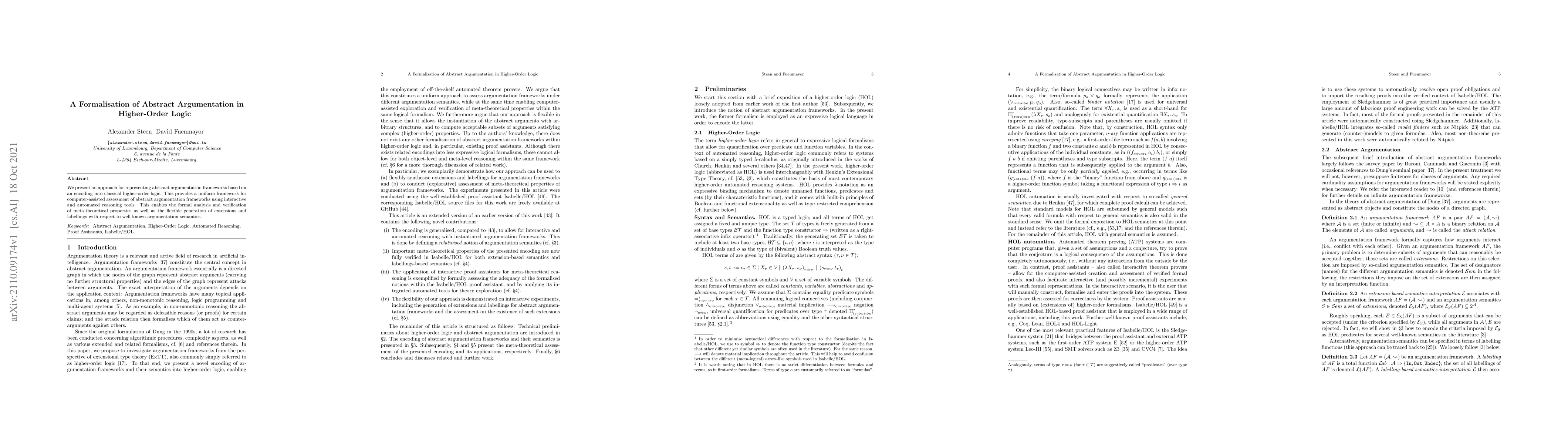 This paper formalizes abstract argumentation frameworks using classical higher-order logic, facilitating computer-assisted evaluation and enabling automated reasoning for verifying properties and generating extensions according to established argumentation semantics.