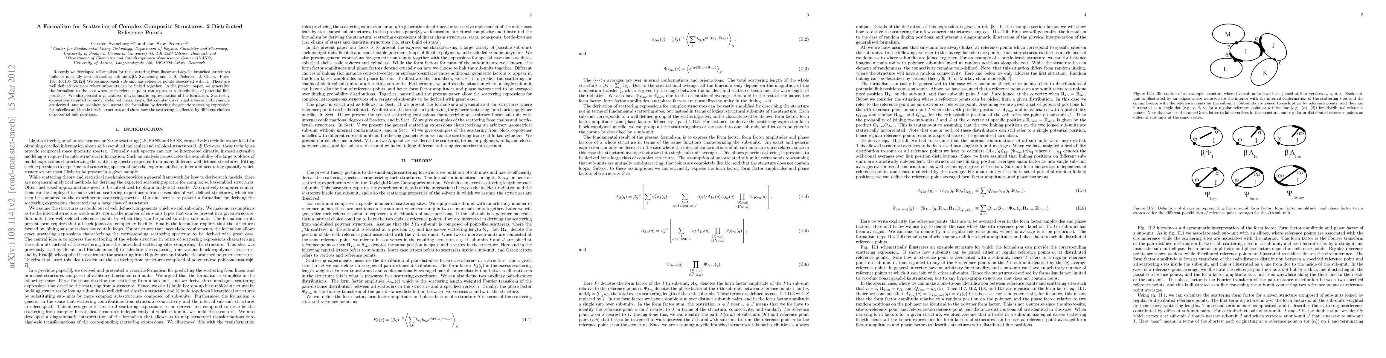Researchers develop a formalism for scattering from complex composite structures by introducing distribution of potential link positions at reference points, enabling modeling of various shapes like micelles and bottle brush structures.