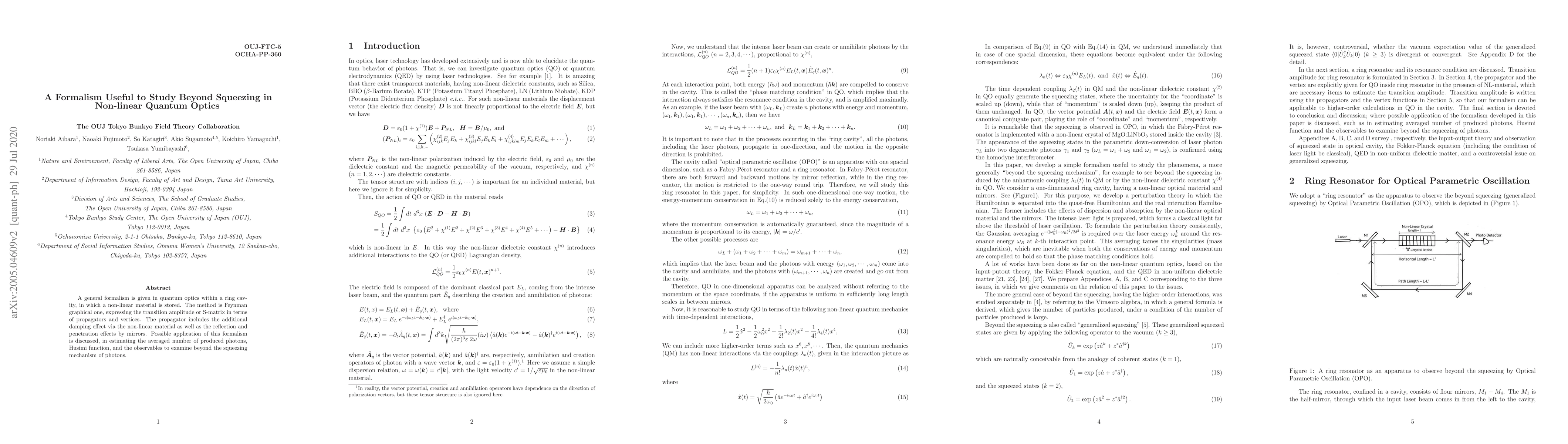 Researchers developed a formalism to study non-linear quantum optics beyond squeezing, incorporating damping effects from non-linear materials and mirror interactions in ring cavities.