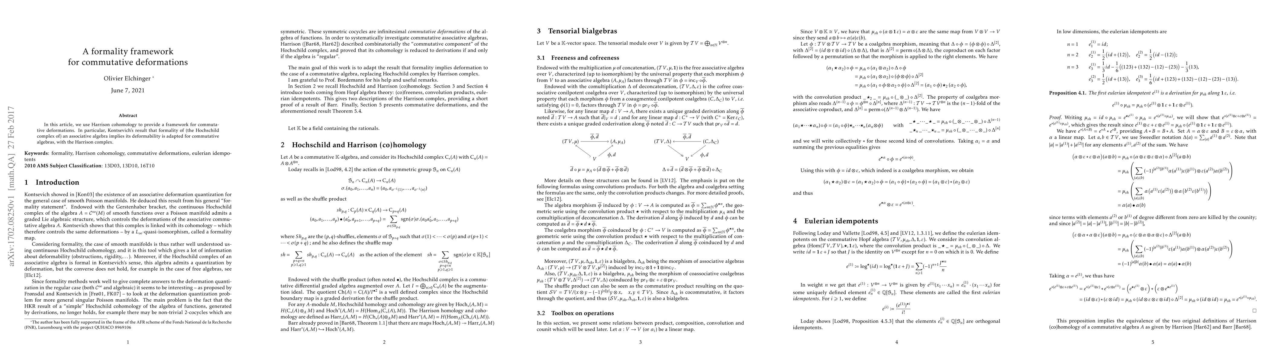 In this article, we use Harrison cohomology to provide a framework for commutative deformations. In particular, Kontsevich's result that formality of (the Hochschild complex of) an associative algebra implies its deformability is adapted for commutative algebras, with the Harrison complex.
