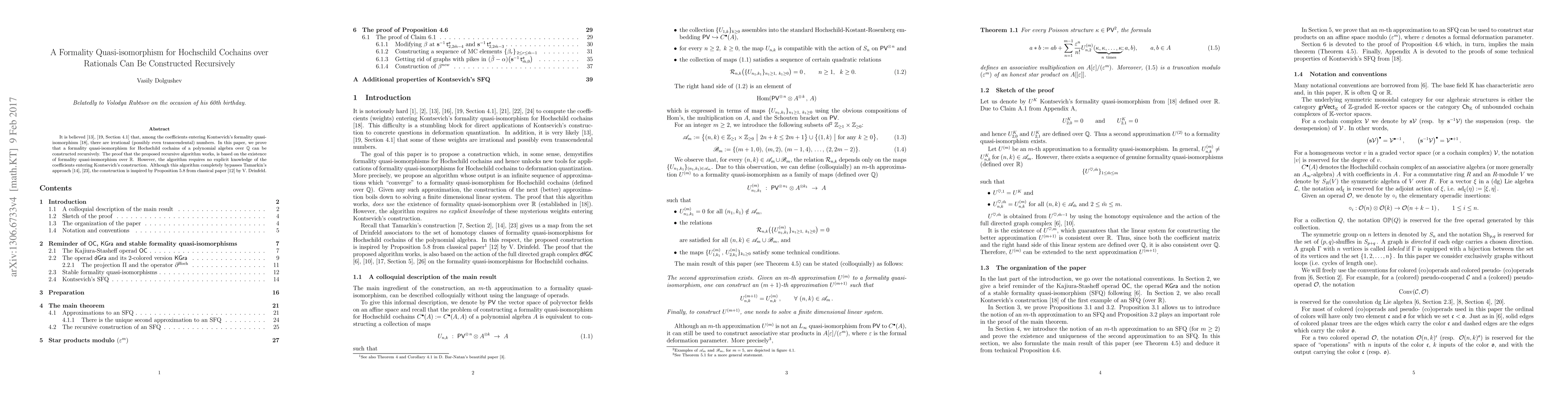 It is believed arXiv:0808.2762, arXiv:math/9904055 that, among the coefficients entering Kontsevich's formality quasi-isomorphism arXiv:q-alg/9709040, there are irrational (possibly even transcendental) numbers. In this paper, we prove that a formality quasi-isomorphism for Hochschild cochains of a polynomial algebra over rationals can be constructed recursively. The proof that the proposed recursive algorithm works, is based on the existence of formality quasi-isomorphism over reals. However, the algorithm requires no explicit knowledge of the coefficients entering Kontsevich's construction. Although this algorithm completely bypasses Tamarkin's approach arXiv:math/0003052, arXiv:math/9803025, the construction is inspired by Proposition 5.8 from the classical paper (Algebra i Analiz, 1990) by V. Drinfeld.