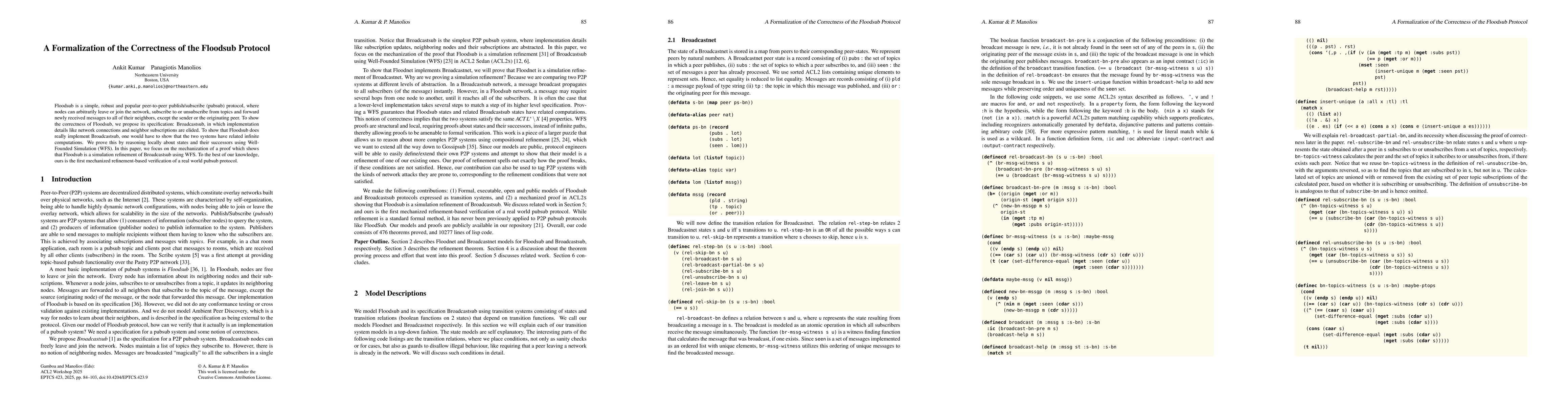 Floodsub is a simple, robust and popular peer-to-peer publish/subscribe (pubsub) protocol, where nodes can arbitrarily leave or join the network, subscribe to or unsubscribe from topics and forward newly received messages to all of their neighbors, except the sender or the originating peer. To show the correctness of Floodsub, we propose its specification: Broadcastsub, in which implementation details like network connections and neighbor subscriptions are elided. To show that Floodsub does really implement Broadcastsub, one would have to show that the two systems have related infinite computations. We prove this by reasoning locally about states and their successors using Well-Founded Simulation (WFS). In this paper, we focus on the mechanization of a proof which shows that Floodsub is a simulation refinement of Broadcastsub using WFS. To the best of our knowledge, ours is the first mechanized refinement-based verification of a real world pubsub protocol.