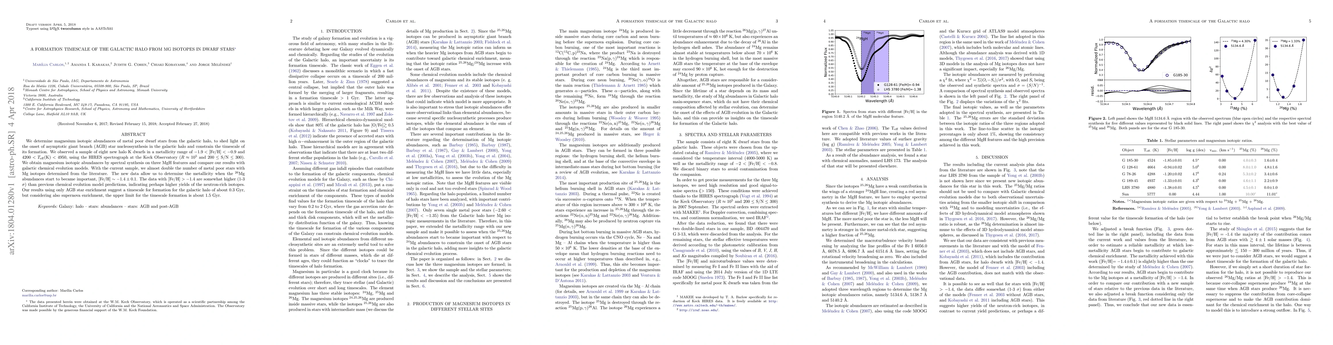 This study investigates magnesium isotopic abundances in metal-poor dwarf stars of the galactic halo to understand the formation timescale and nucleosynthesis of asymptotic giant branch stars. The findings suggest a formation timescale of about 0.3 Gyr from AGB stars, extending up to 1.5 Gyr when considering supernova contributions.