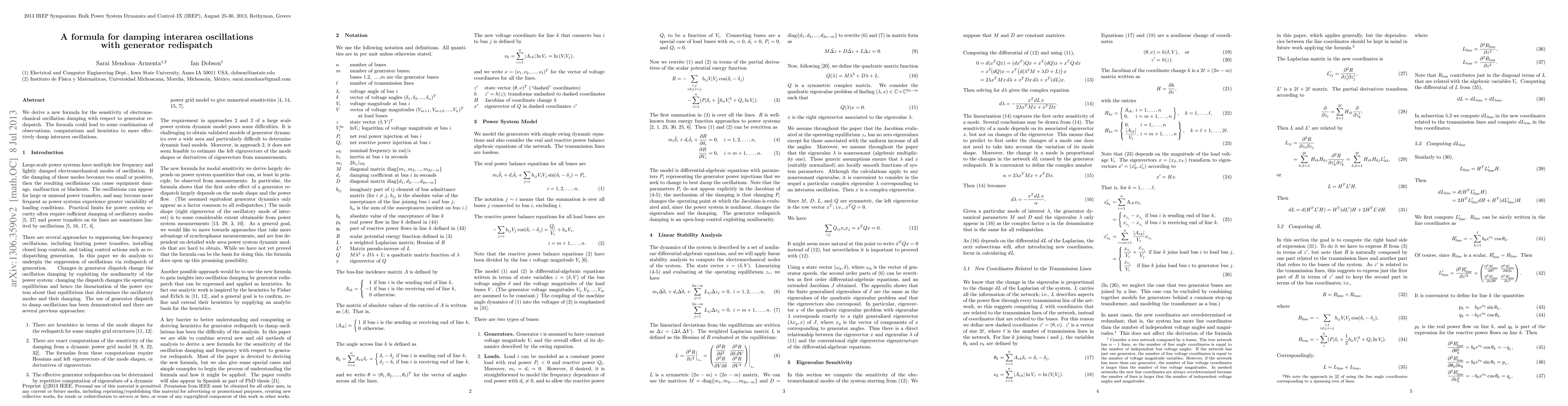 We derive a new formula for the sensitivity of electromechanical oscillation damping with respect to generator redispatch. The formula could lead to some combination of observations, computations and heuristics to more effectively damp interarea oscillations.