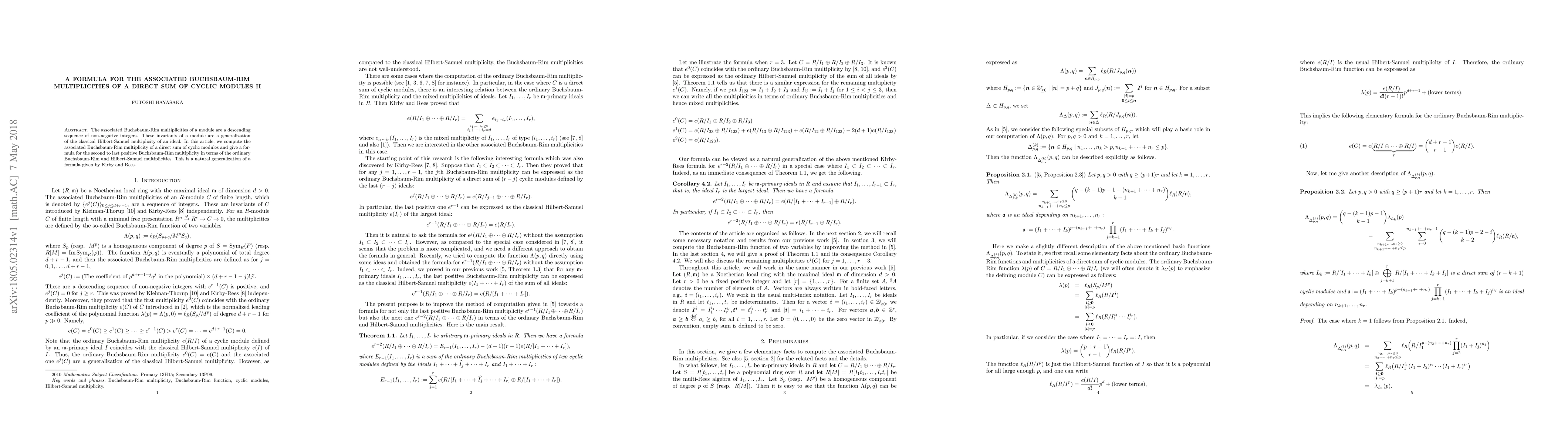 This paper computes the associated Buchsbaum-Rim multiplicity of a direct sum of cyclic modules, providing a formula for the second to last positive multiplicity in terms of the ordinary Buchsbaum-Rim and Hilbert-Samuel multiplicities, extending a previous formula by Kirby and Rees.
