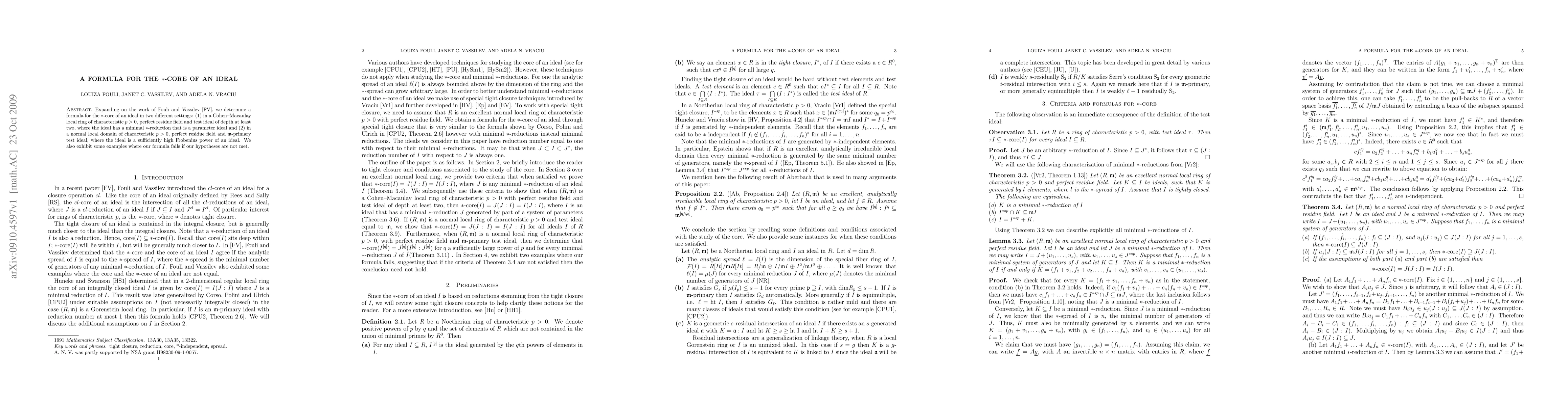 Expanding on the work of Fouli and Vassilev \cite{FV}, we determine a formula for the *-$\rm{core}$ of an ideal in two different settings: (1) in a Cohen--Macaulay local ring of characteristic $p>0$, perfect residue field and test ideal of depth at least two, where the ideal has a minimal *-reduction that is a parameter ideal and (2) in a normal local domain of characteristic $p>0$, perfect residue field and $\m$-primary test ideal, where the ideal is a sufficiently high Frobenius power of an ideal. We also exhibit some examples where our formula fails if our hypotheses are not met.