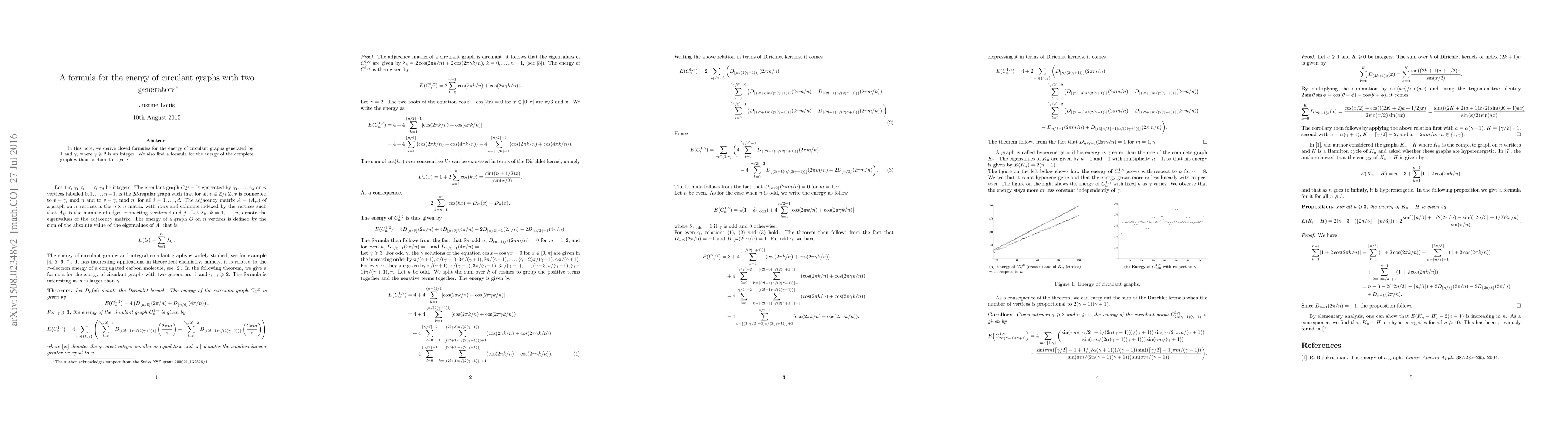 In this note, we derive closed formulas for the energy of circulant graphs generated by $1$ and $\gamma$, where $\gamma\geqslant2$ is an integer. We also find a formula for the energy of the complete graph without a Hamilton cycle.