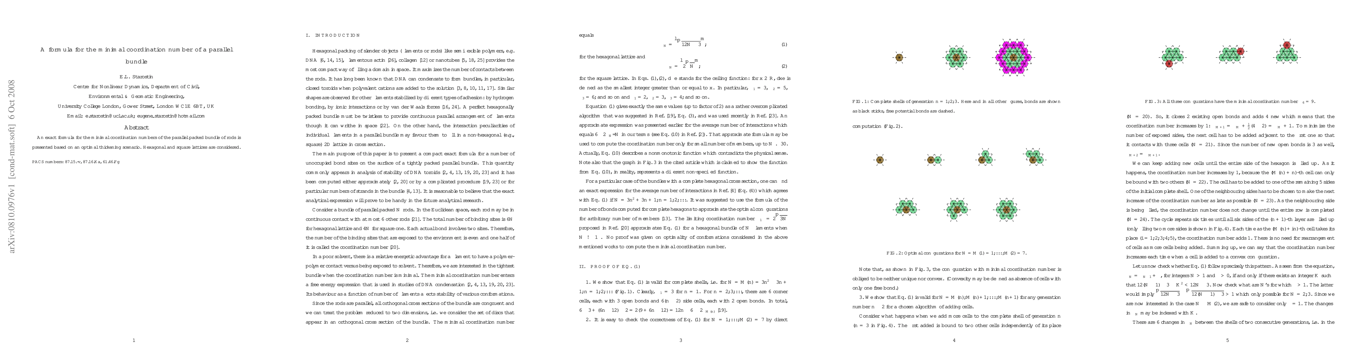 Researchers found an exact formula for the minimal coordination numbers of a parallel packed bundle of rods in both hexagonal and square lattices, providing new insights into the structure's properties.
