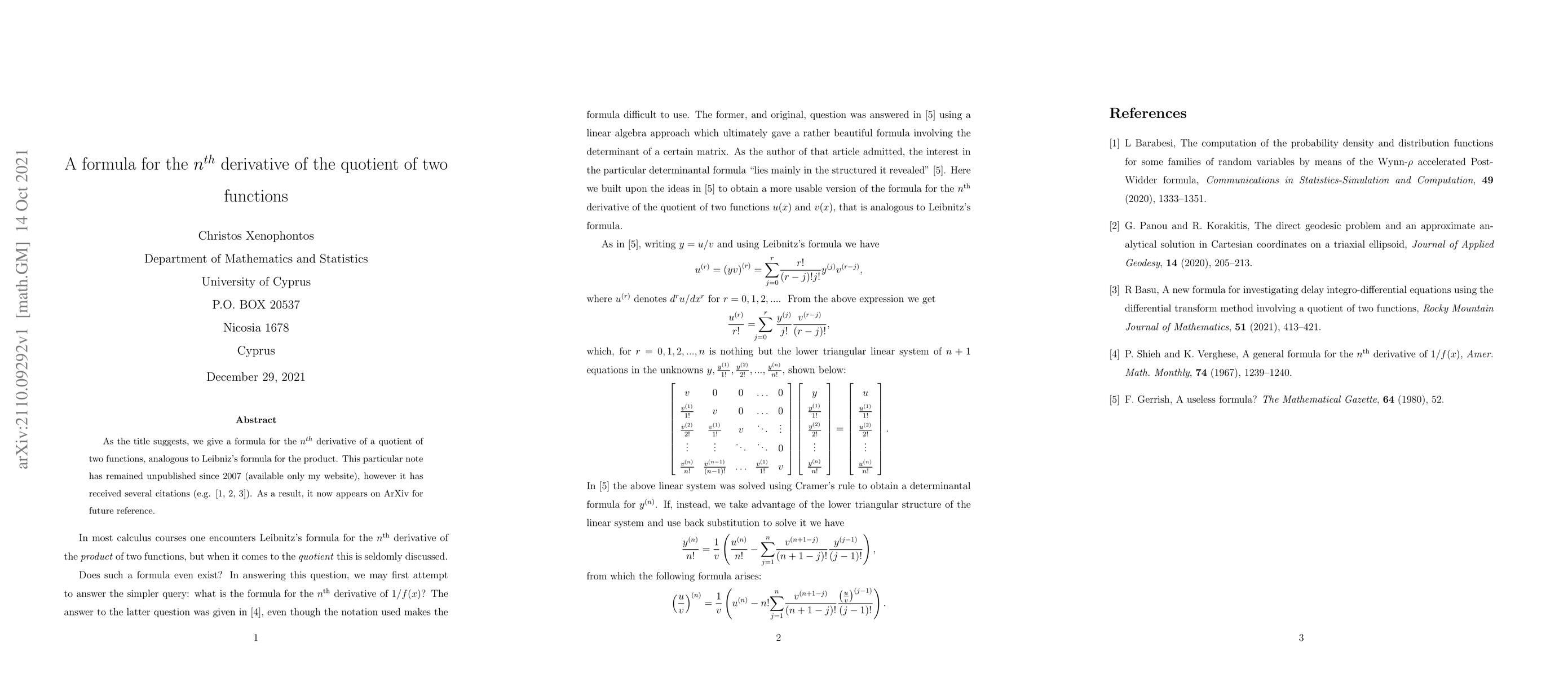 Researchers have developed a formula for finding the nth derivative of the quotient of two functions, extending an existing principle from product differentiation to quotients. The discovery has been published on ArXiv for future reference.