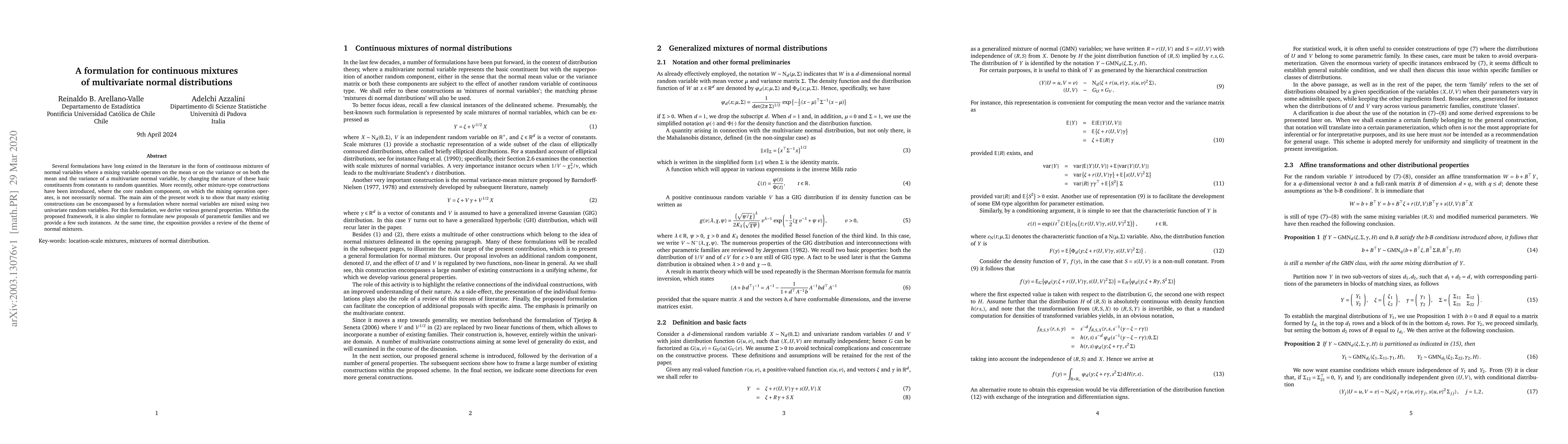 This paper presents a unified formulation for continuous mixtures of multivariate normal distributions using two univariate random variables. It reviews existing constructions and demonstrates how they can be encompassed within this new framework, deriving general properties and providing examples of new parametric families.
