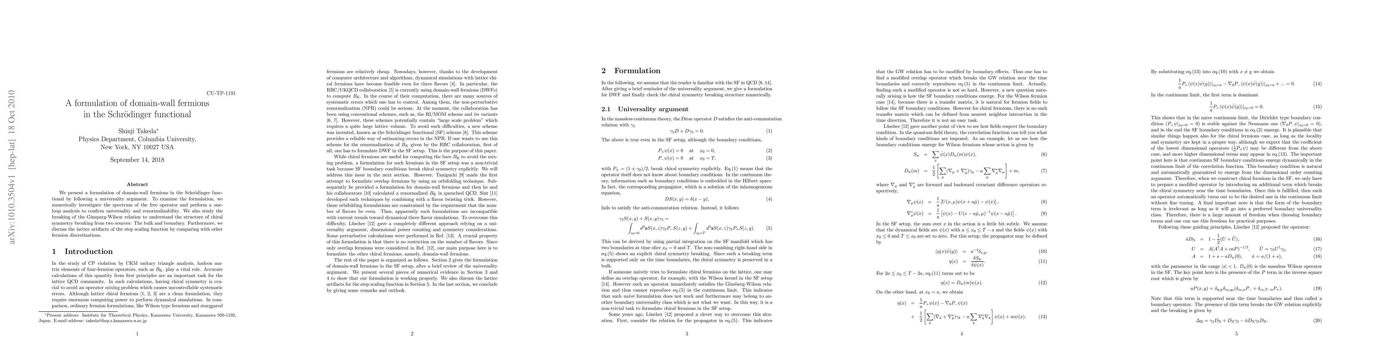 This paper formulates domain-wall fermions within the Schrödinger functional, confirming their universality and renormalizability through numerical analysis and one-loop calculations. It also explores the breaking of the Ginsparg-Wilson relation to elucidate chiral symmetry breaking mechanisms.