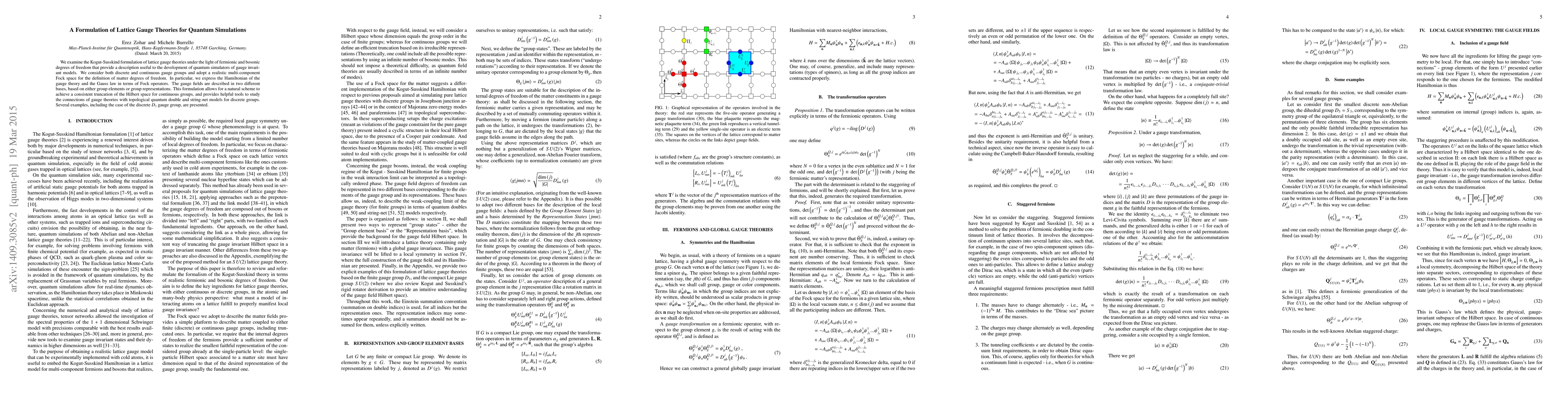 This paper formulates lattice gauge theories for quantum simulations, focusing on fermionic and bosonic degrees of freedom. It presents a multi-component Fock space approach, describing the Hamiltonian and Gauss law in terms of Fock operators, and explores truncation methods for continuous gauge groups, with applications to discrete groups like $D_3$.