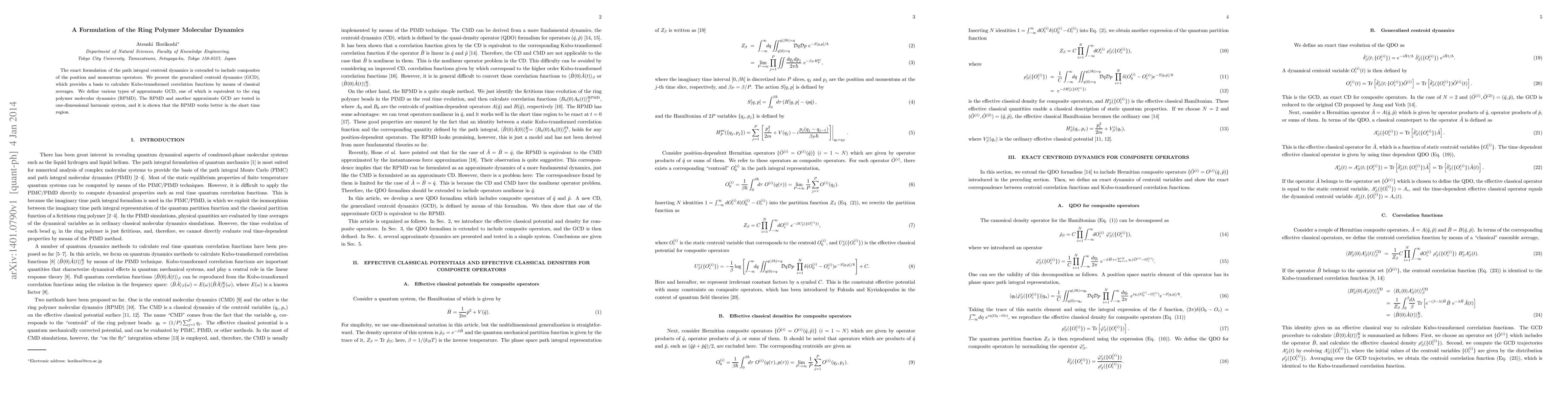 The paper formulates the generalized centroid dynamics (GCD) to calculate Kubo-transformed correlation functions, with one approximation equivalent to ring polymer molecular dynamics (RPMD). Tests on a one-dimensional harmonic system show that RPMD performs better in the short time region.