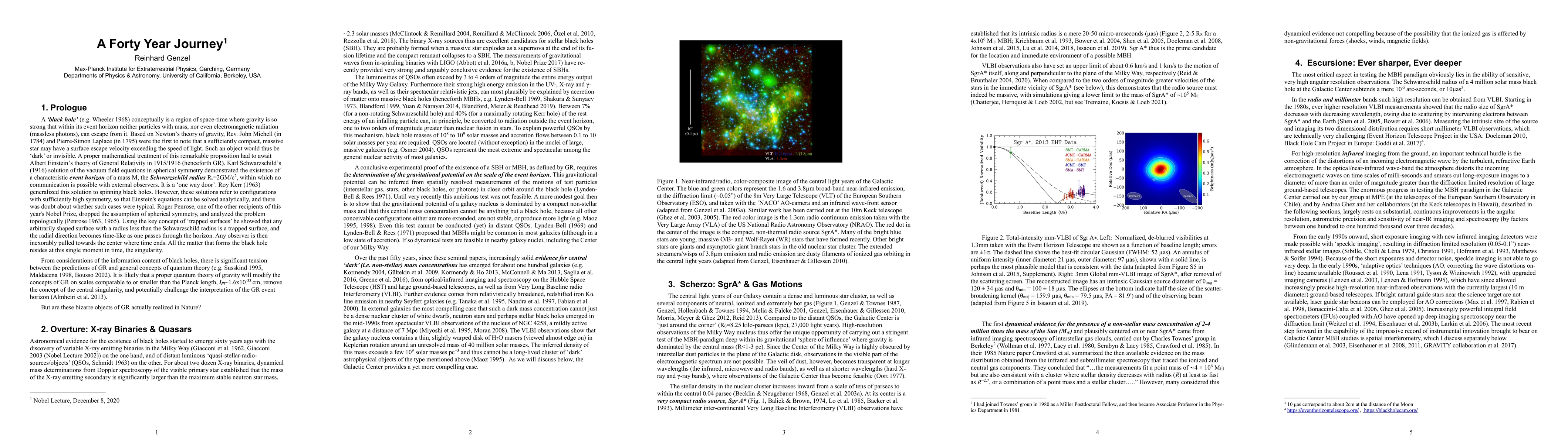 I try to describe the stepwise progress in proving that massive black holes do exist in the Universe. As compared to forty years ago, measurements have pushed the 'size' of the 4 million solar mass concentration in the Galactic Center downward by almost 10^6, and its density up by 10^18. Looking ahead toward the future, the question is probably no longer whether SgrA* must be a MBH, but rather whether GR is correct on the scales of the event horizon, whether space-time is described by the Kerr metric and whether the 'no hair theorem' holds. Further improvements of the VLT interferometer GRAVITY (to GRAVITY+) and the next generation 25-40m telescopes (the ESO-ELT, the TMT and the GMT) promise further progress. A test of the no hair theorem in the Galactic Center might come from combining the stellar dynamics with EHT measurements of the photon ring of SgrA*.