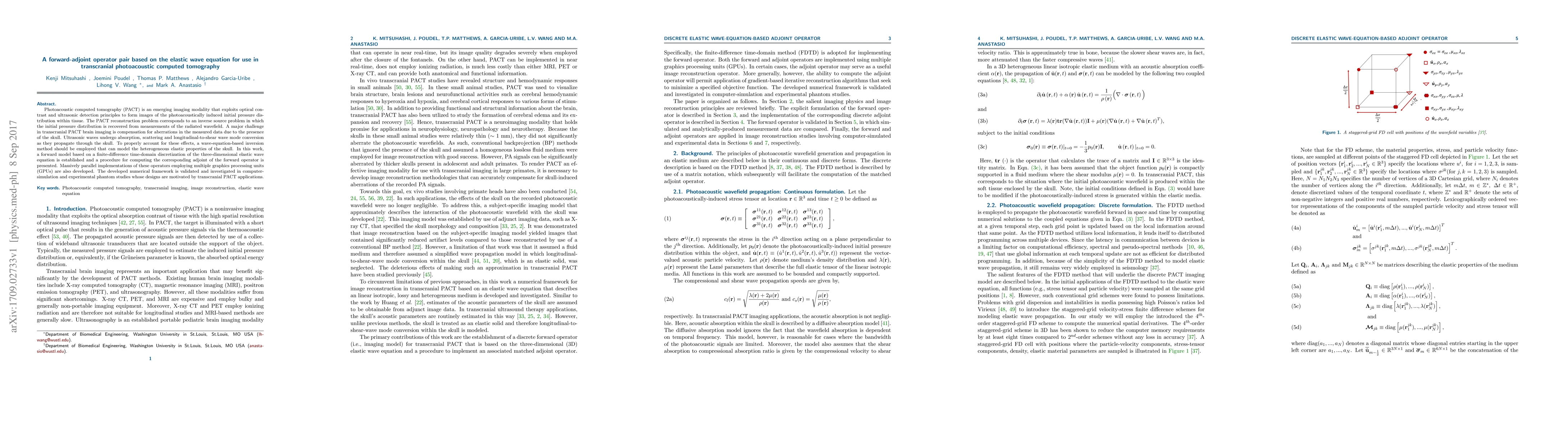 This paper presents a forward-adjoint operator pair based on the elastic wave equation for reconstructing images in transcranial photoacoustic computed tomography (PACT), addressing skull-induced aberrations through a wave-equation-based inversion method. The framework is validated using GPU-based implementations and both computer simulations and phantom studies.