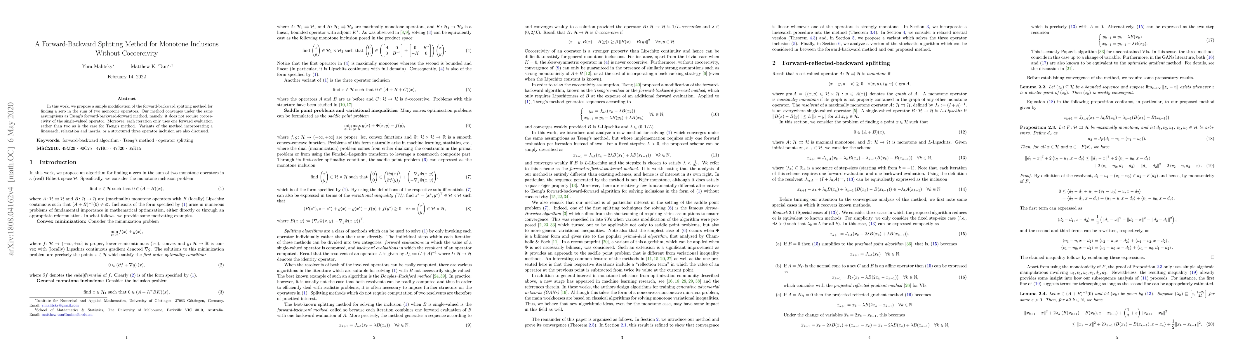 This paper introduces a modified forward-backward splitting method for solving monotone inclusions without cocoercivity, achieving convergence with fewer evaluations per iteration compared to Tseng's method. The method also explores variants with linesearch, relaxation, inertia, and for three-operator inclusions.