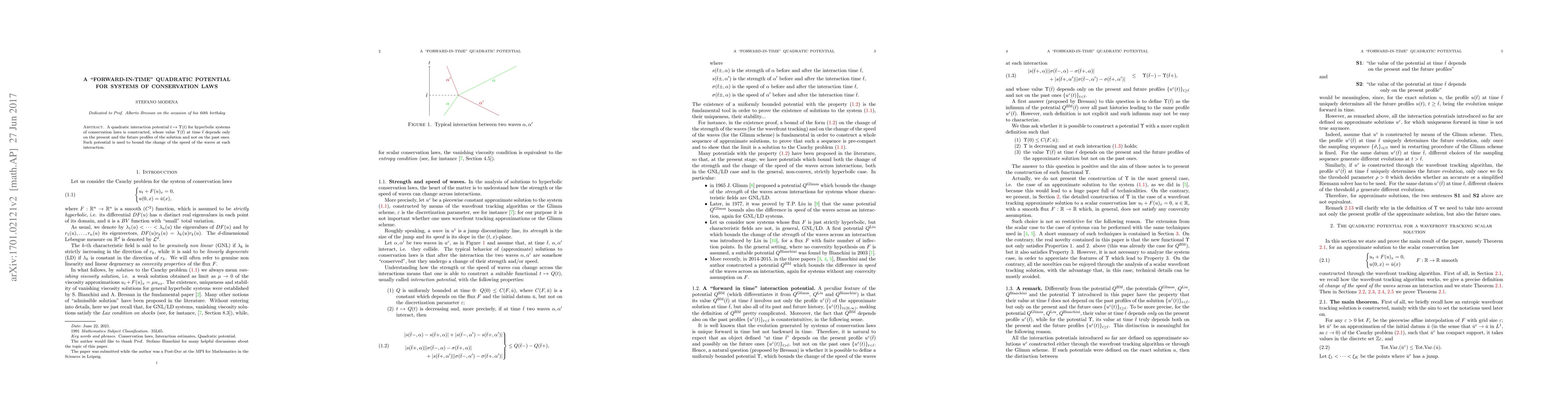 This paper constructs a forward-in-time quadratic potential for hyperbolic conservation laws, ensuring that the potential at any time depends solely on present and future solution profiles, not the past. This potential is utilized to bound the change in wave speeds during interactions.