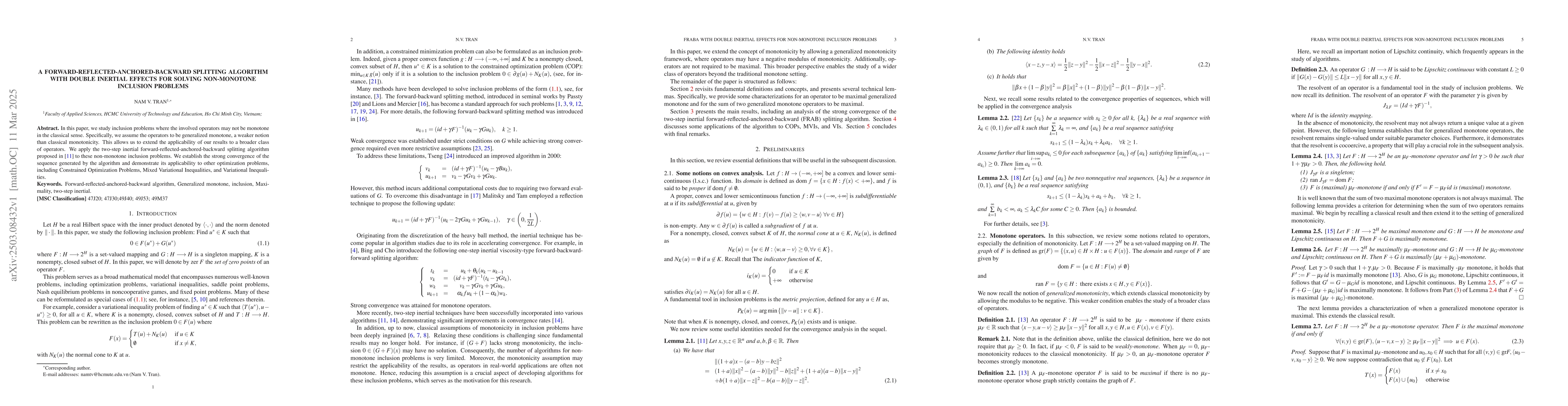 The research proposes a forward-reflected-anchored-backward splitting algorithm with double inertial effects for solving non-monotone inclusion problems, extending applicability to operators that are generalized monotone, a weaker notion than classical monotonicity.