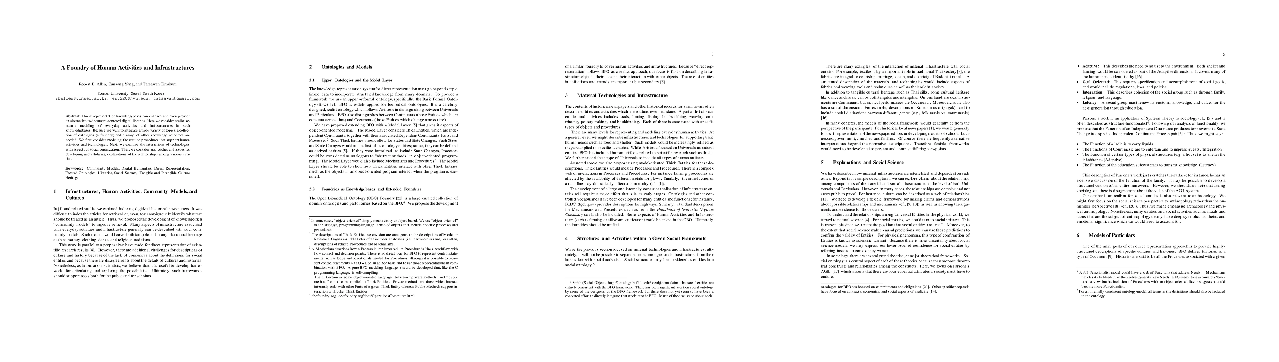 Direct representation knowledgebases can enhance and even provide an alternative to document-centered digital libraries. Here we consider realist semantic modeling of everyday activities and infrastructures in such knowledgebases. Because we want to integrate a wide variety of topics, a collection of ontologies (a foundry) and a range of other knowledge resources are needed. We first consider modeling the routine procedures that support human activities and technologies. Next, we examine the interactions of technologies with aspects of social organization. Then, we consider approaches and issues for developing and validating explanations of the relationships among various entities.