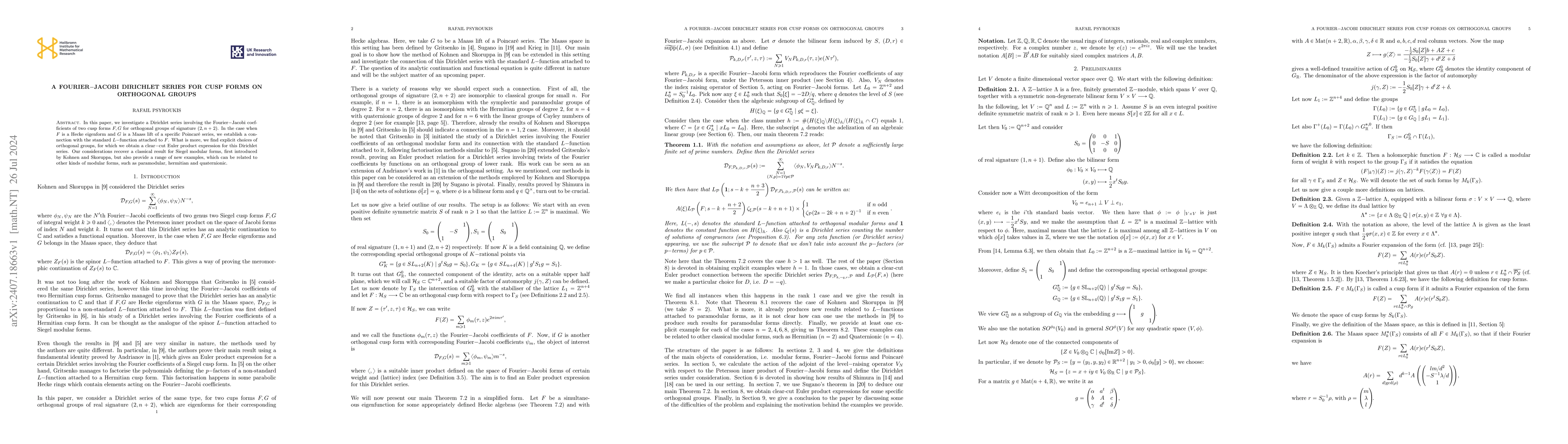 This paper establishes a Dirichlet series using Fourier-Jacobi coefficients of cusp forms for orthogonal groups of signature (2,n+2), showing a connection to the standard L-function when one form is a Hecke eigenform and the other a Maass lift. It also provides Euler product expressions for certain orthogonal groups, extending classical results for Siegel modular forms to new modular form types.