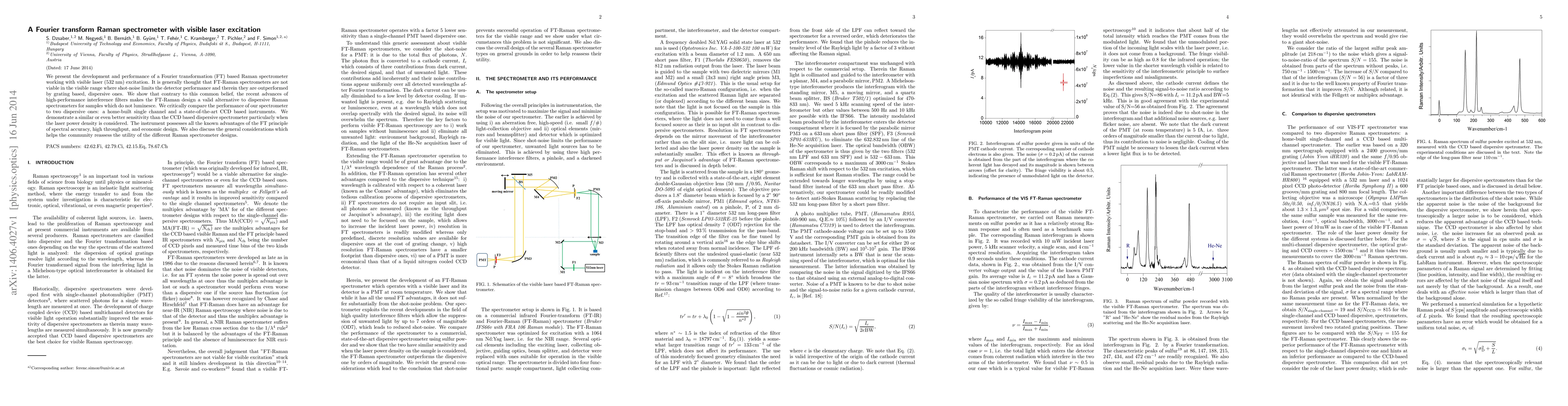 This paper develops a Fourier transform Raman spectrometer using visible laser excitation and demonstrates its comparable or superior sensitivity to dispersive Raman spectrometers, challenging the conventional belief that FT-Raman is not viable in the visible range. The study highlights the advantages of the FT design and suggests a reassessment of Raman spectrometer utility.