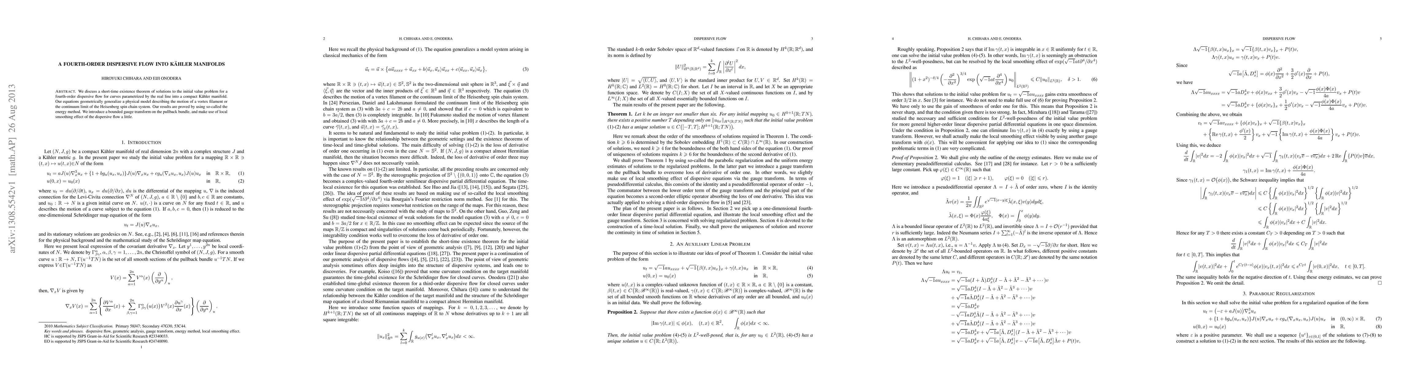 Researchers prove a short-time existence theorem for solutions to a fourth-order dispersive flow into compact K"ahler manifolds, showing the flow's ability to model physical phenomena like vortex filaments or Heisenberg spin chain systems.