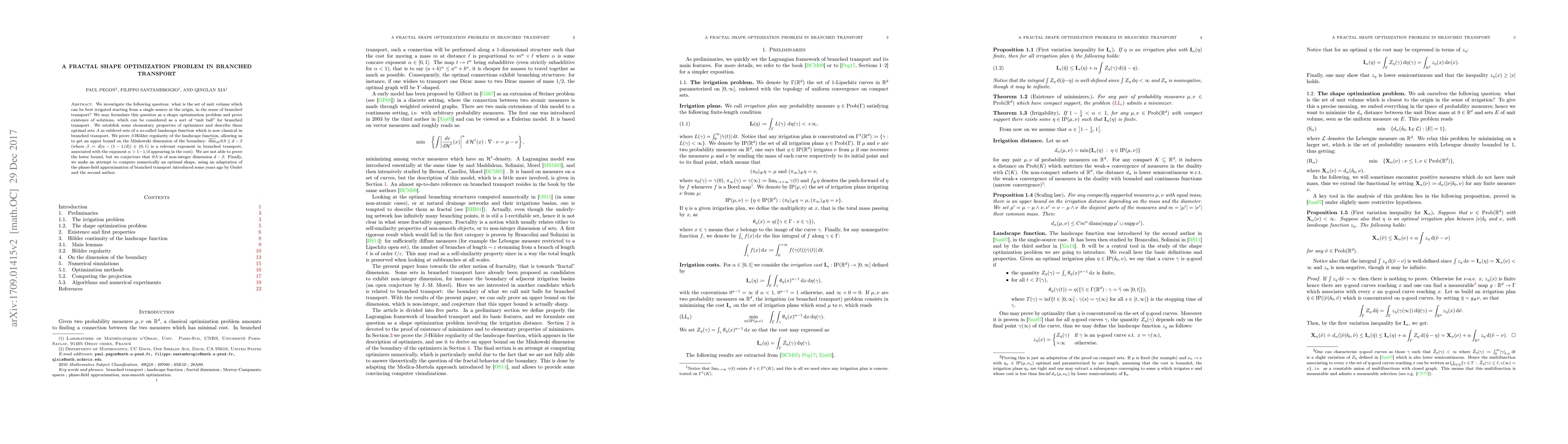 This paper explores the optimal shape for branched transport from a single source, framing it as a shape optimization problem. It proves the existence of optimal solutions and establishes $\beta$-Hölder regularity of the associated landscape function, leading to an upper bound on the Minkowski dimension of the boundary of the optimal set.